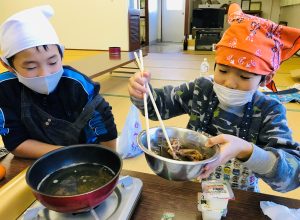 5・6年生は家庭科で調理実習。