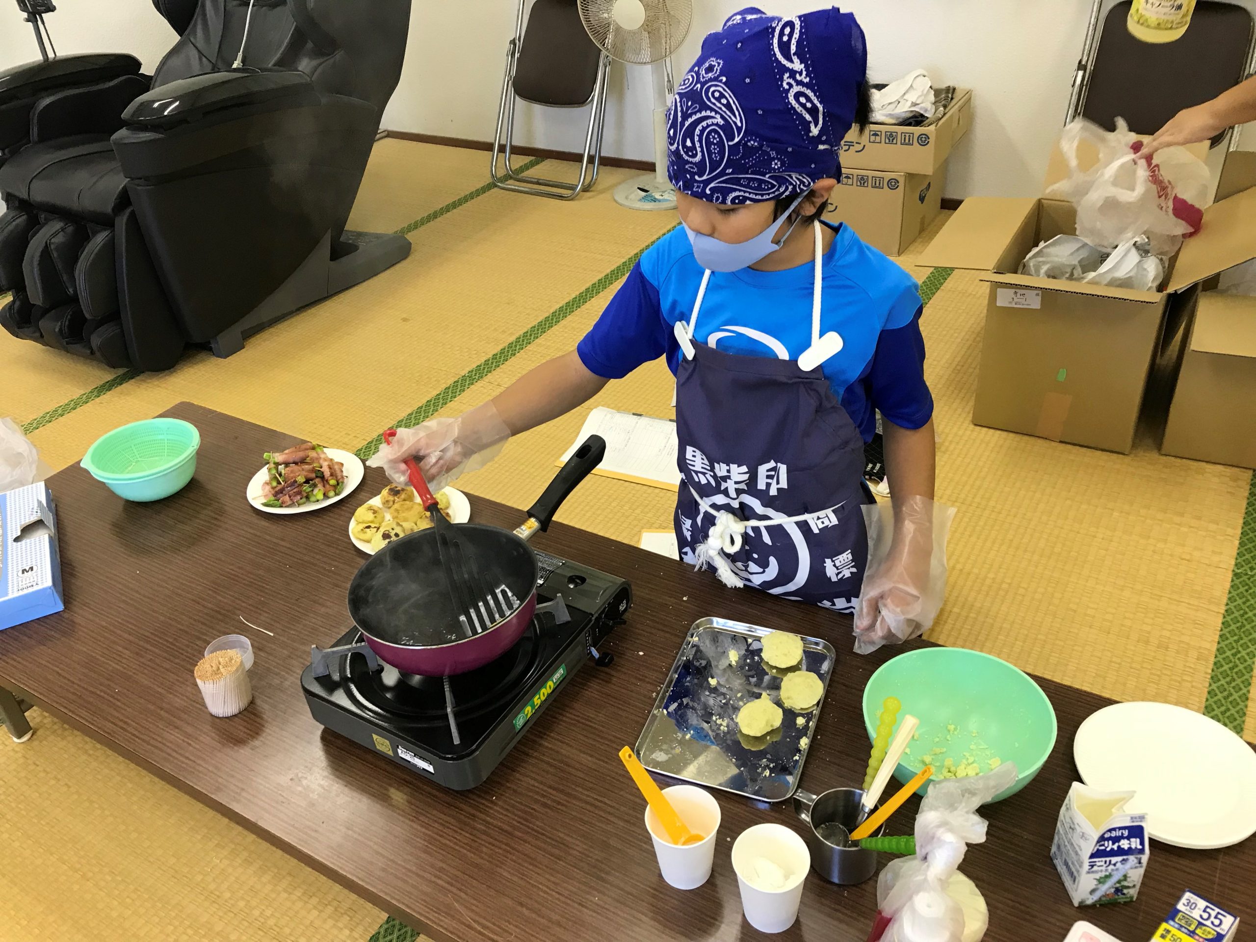 6年生は「アスパラとえのきのベーコン巻きと芋餅」
