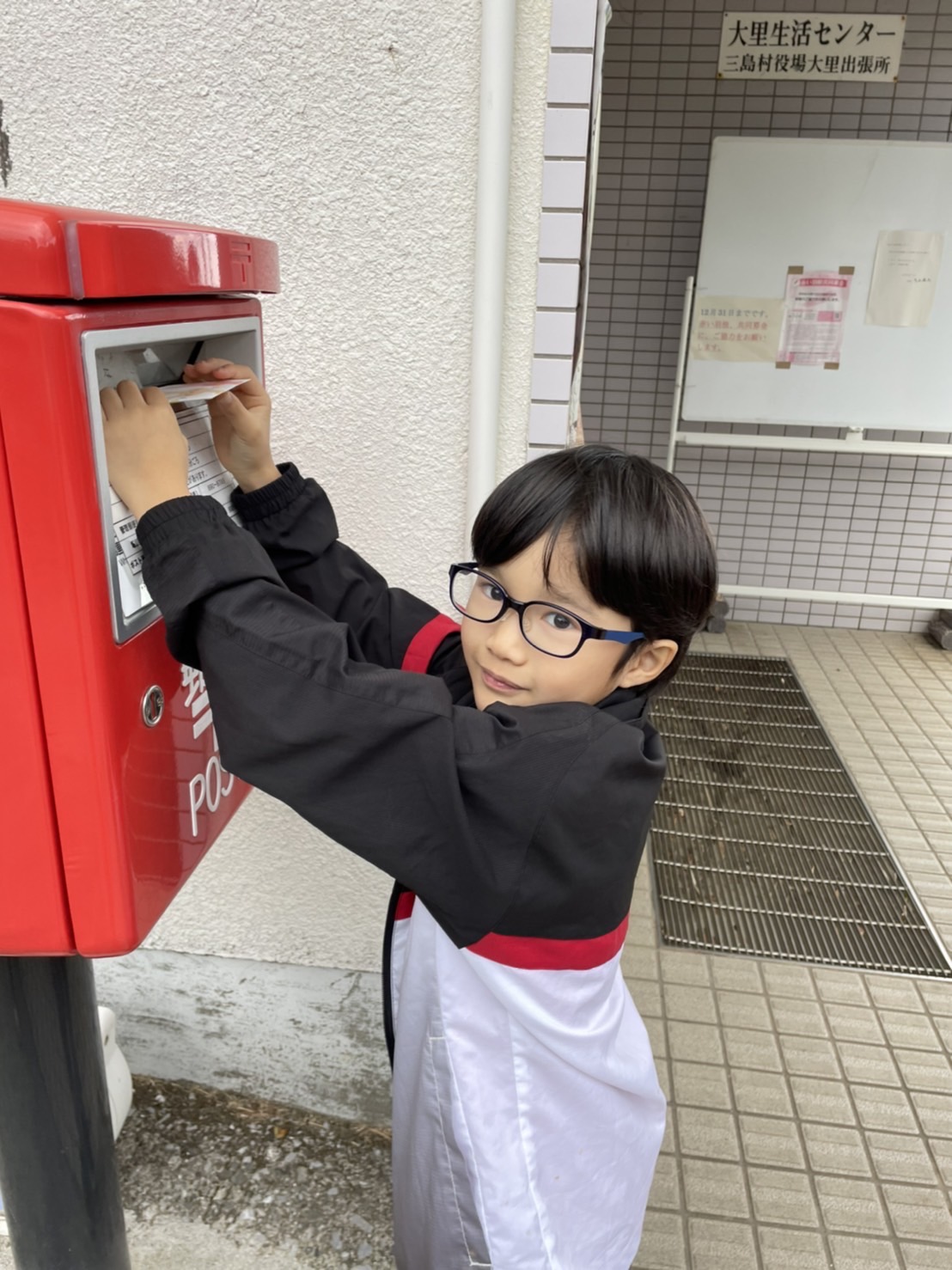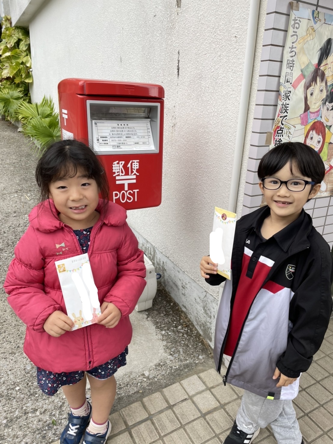 1年生は,国語の授業で郵便局にお手紙を出しに行きました。