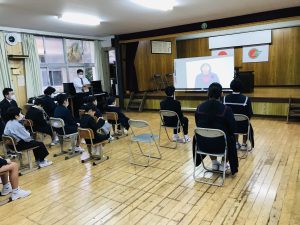 始業式では,3学期の目標と今年の目標を児童生徒代表の2名が発表しました。
