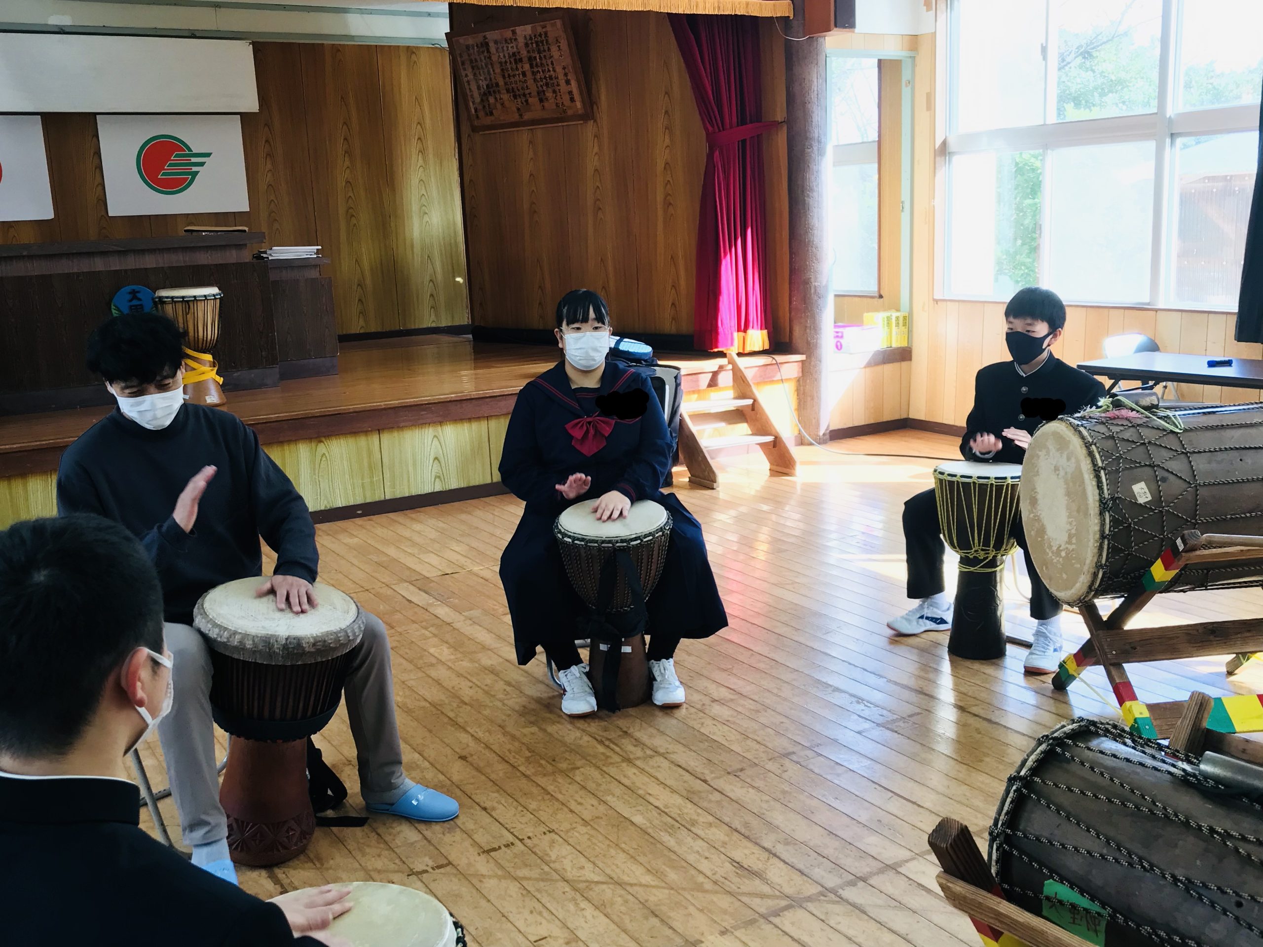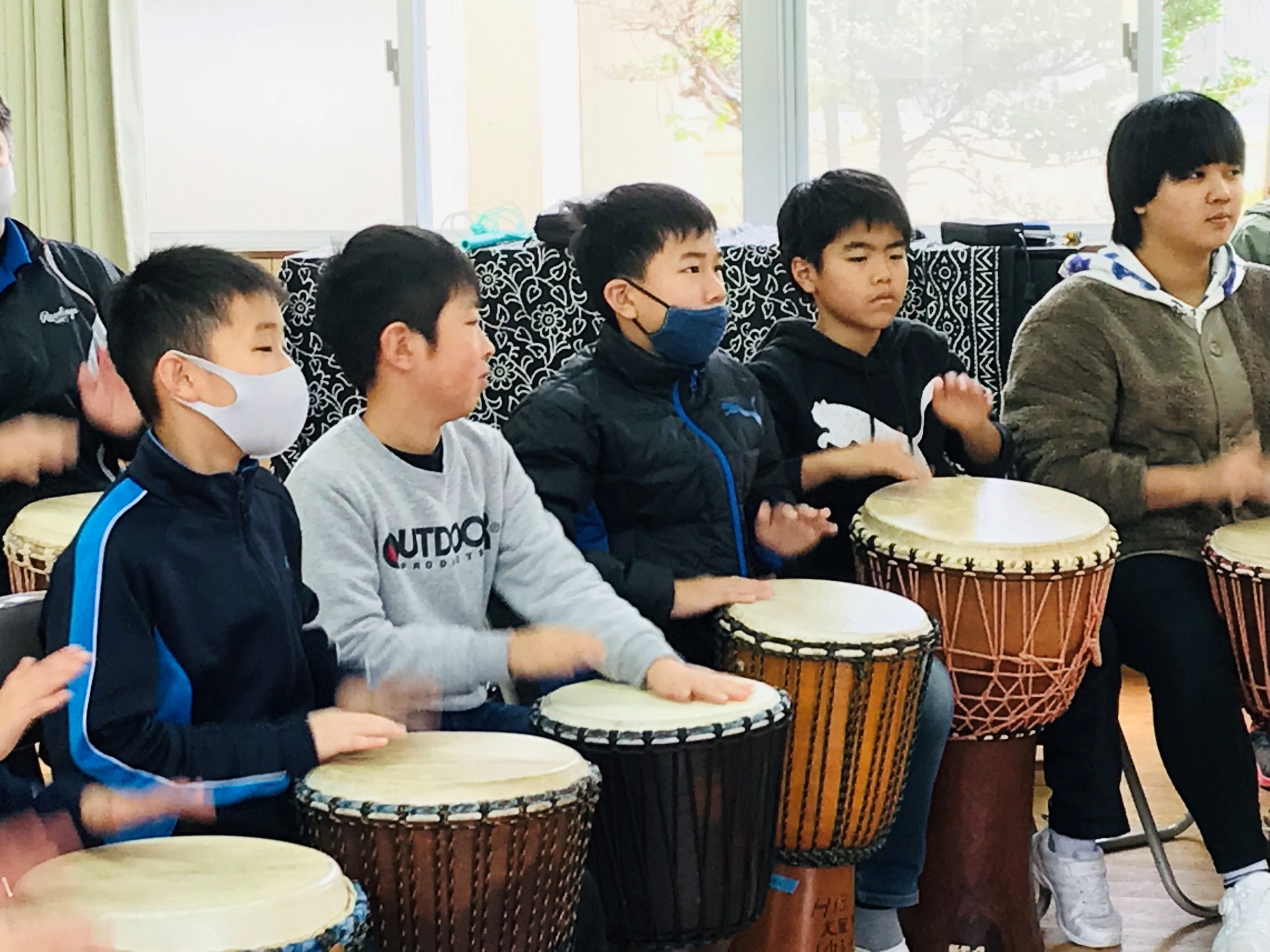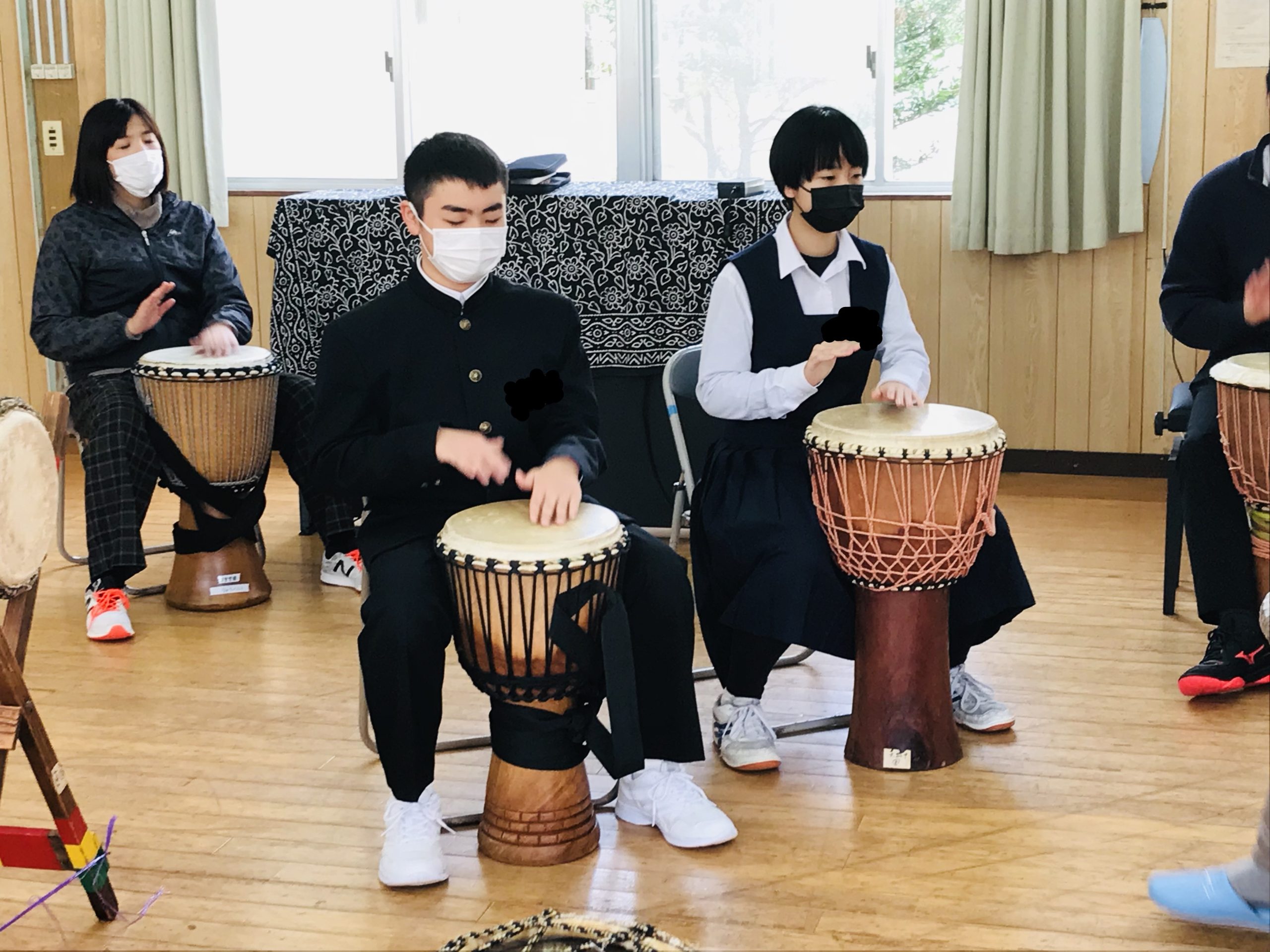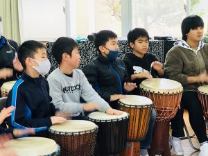 お昼休みも楽しそうにジャンベを叩いていました。