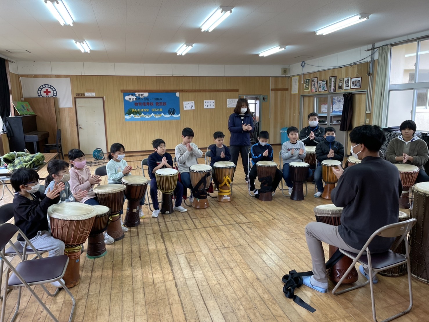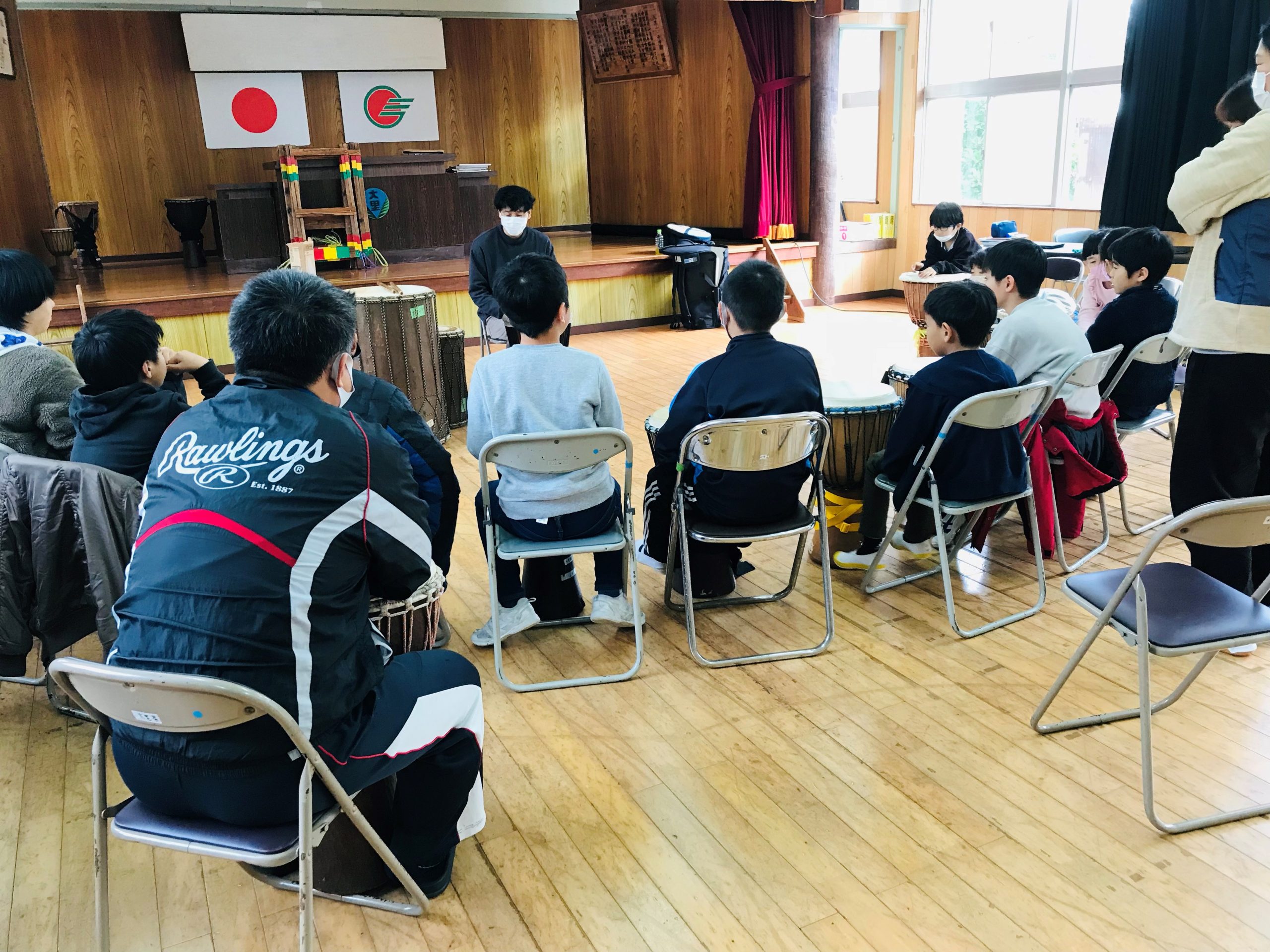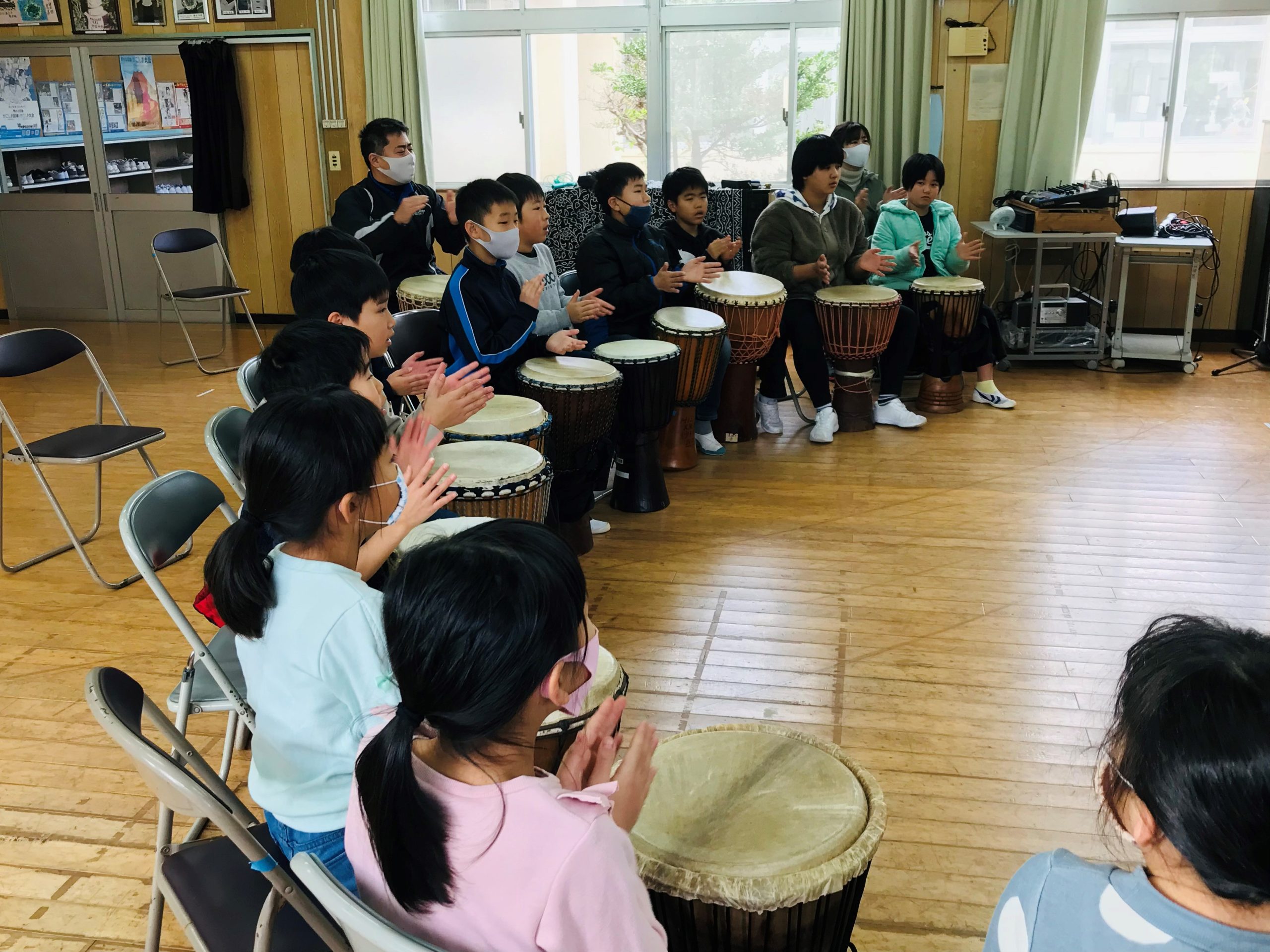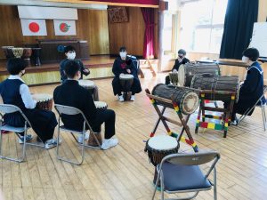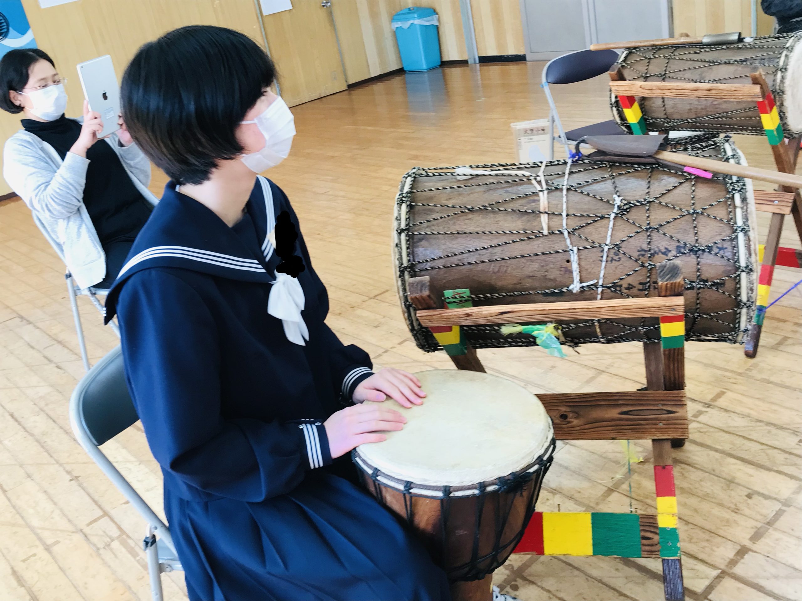 お昼休みも楽しそうにジャンベを叩いていました。