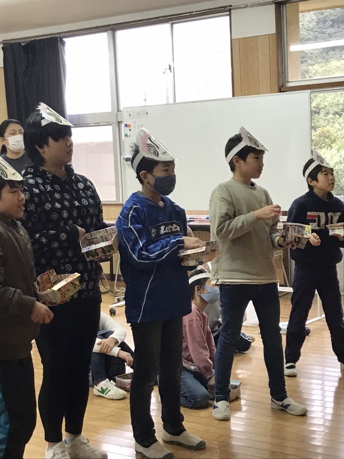お昼休みの子供たちを見ていると,普段とは少し違う様子に「無事,鬼退治成功したのか」とほっこり☺