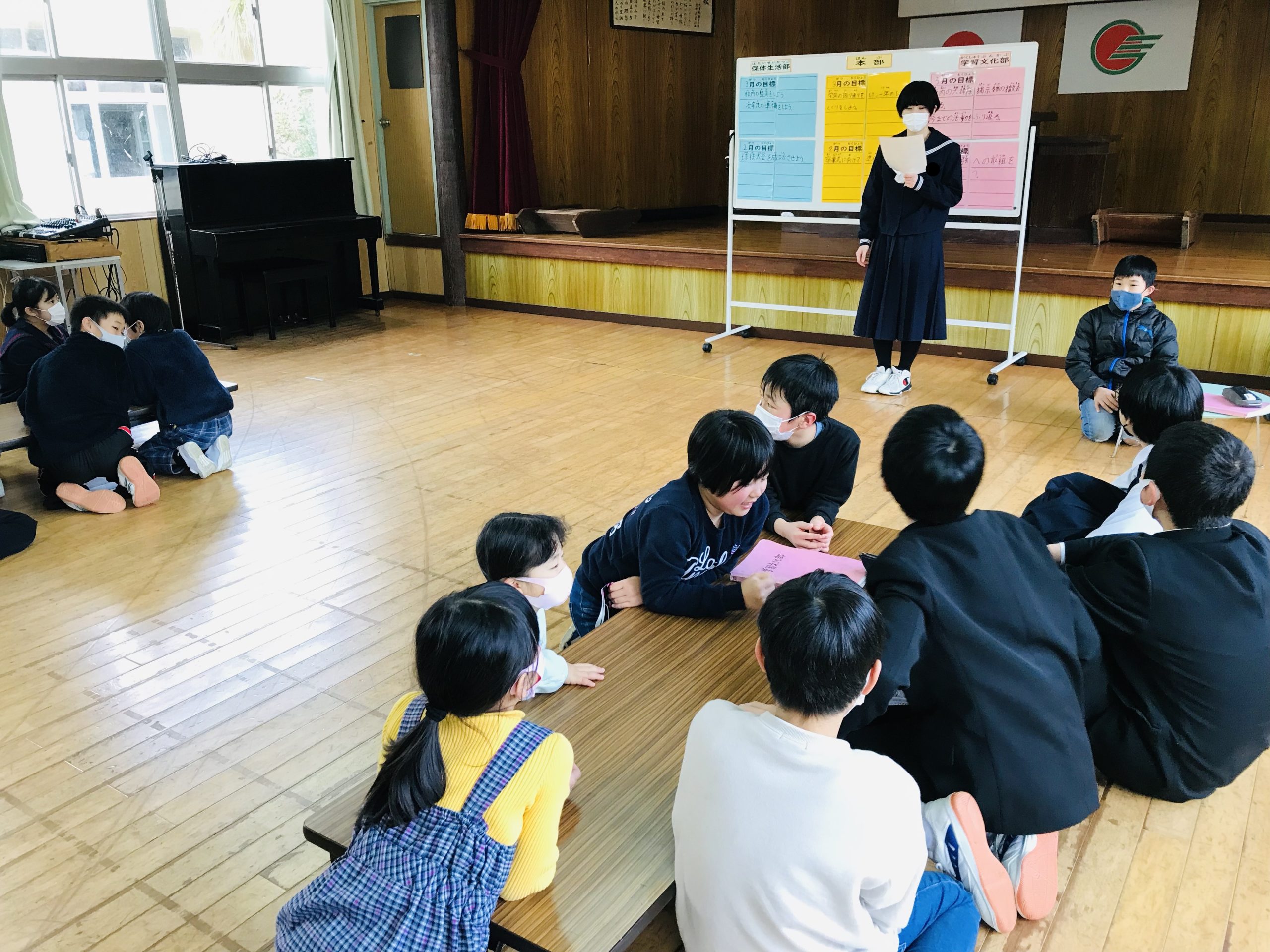 昨日はコロナワクチン接種がありましたが,今日も大里学園は元気に活動しております。