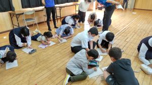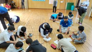 前期・後期混ざった小グループに分かれ、戦争についての自分たちのイメージを表現したり、それぞれが知っていることについて意見交換したりしました。