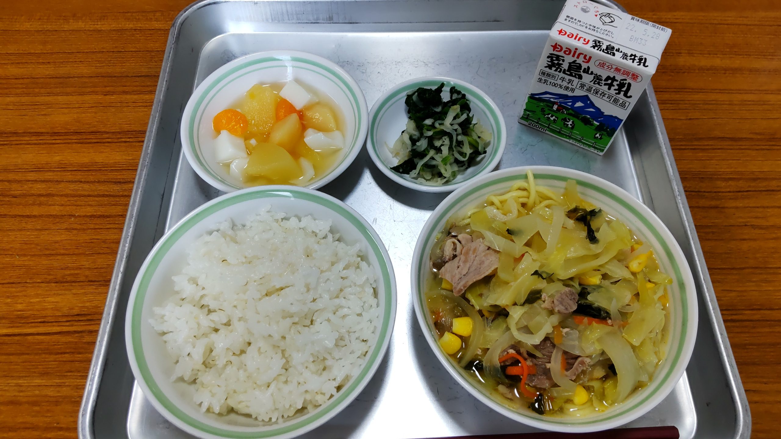 今日は🍜 投稿者: 三島村立 三島大里学園 2022年4月14日2022年4月14日 何かと忙しい日々が続いていますが、そんな中で一息つけるのが給食の時間です。 目の回るような1日で、子供たちの写真を撮るのを忘れてしまった担当ですが、給食の写真だけはしっかり撮っています。 今日のメニューは 『 牛乳・小ごはん・豚肉と野菜のラーメン・切り干し大根と青菜和え・フルーツ杏仁 』でした。 ラーメンとごはん、担当にとってはこの炭水化物攻撃がたまりません。 最高でした!! さあ、今週も明日まで。頑張らねば!!