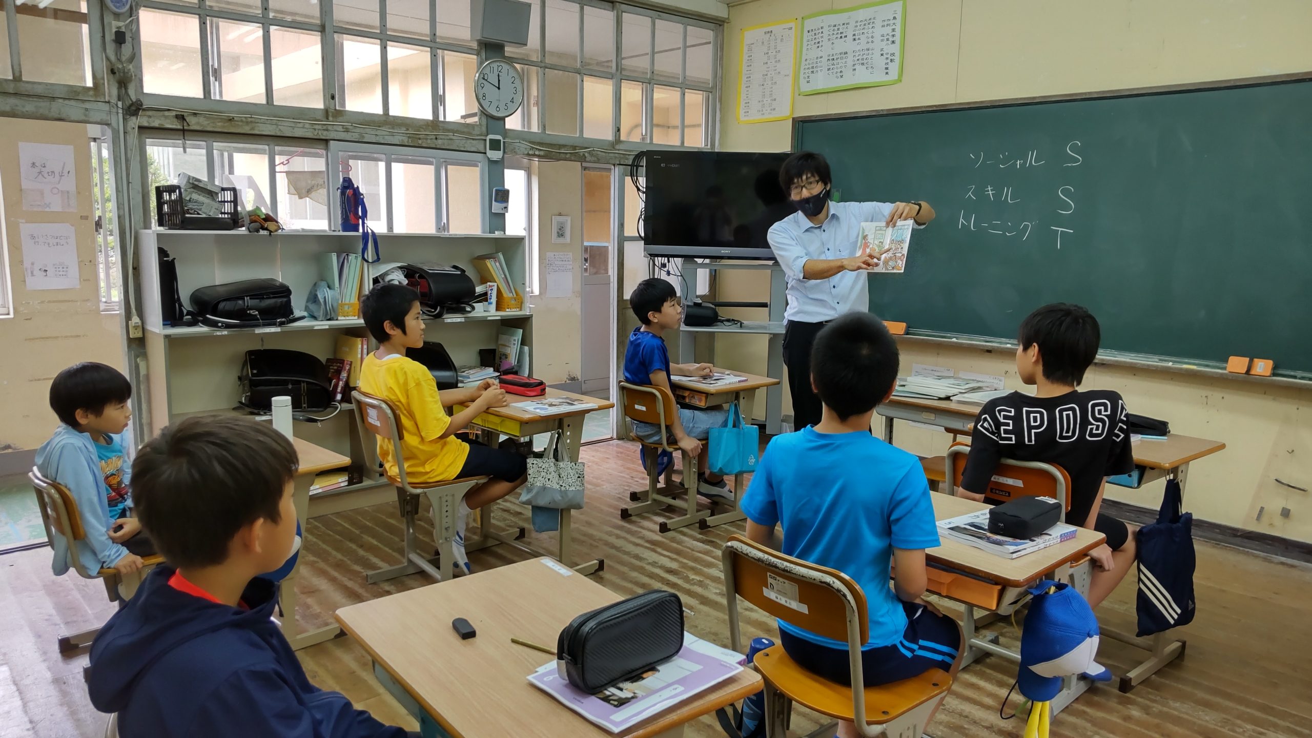 全校集会&道徳 投稿者: 三島村立 三島大里学園 2022年4月26日 今朝は全校集会でした。 短縄を使って何回跳べるかチャレンジです! 思ったようにいかなかったメンバーもまだまだこれから。頑張ろう!! そして、こちらは道徳の様子 後期課程の戸田先生が5・6年生の道徳を行っています。 よりよい学校生活や集団生活の充実のことについてさまざまな体験活動を交えながら考えました。 そして・・・。給食! 『 牛乳・ぶどうパン・酢鶏・ひじきと豆サラダ 』 ごちそうさまでした!!