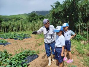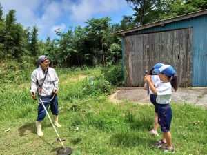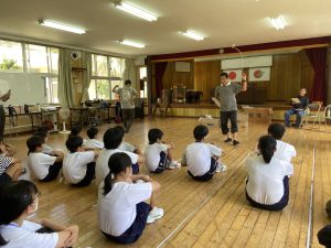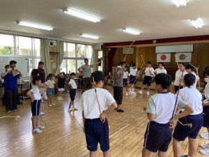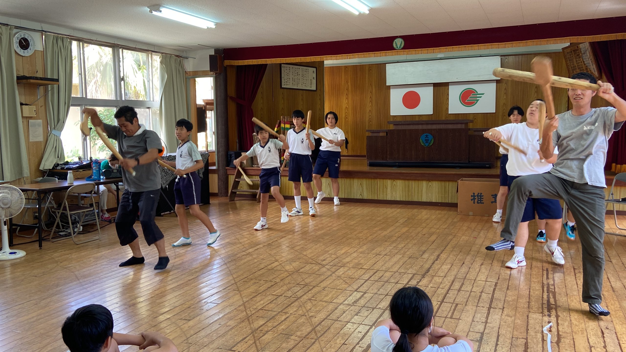 今日は、地区の方に面踊りと弓矢踊りの練習第1回目がありました!