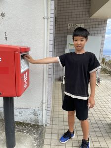 6年生の2人は暑中見舞いのはがきを書いて