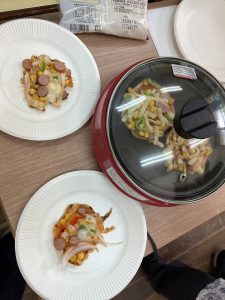 トッピングが終わり、いよいよホットプレートで焼きます!