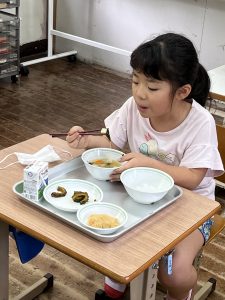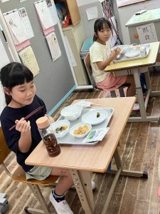 明日は十五夜ということで、給食に「月見だんご」がでました!