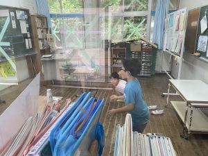 慣れた手つきで焼き上がったプラ板をプレスします!!