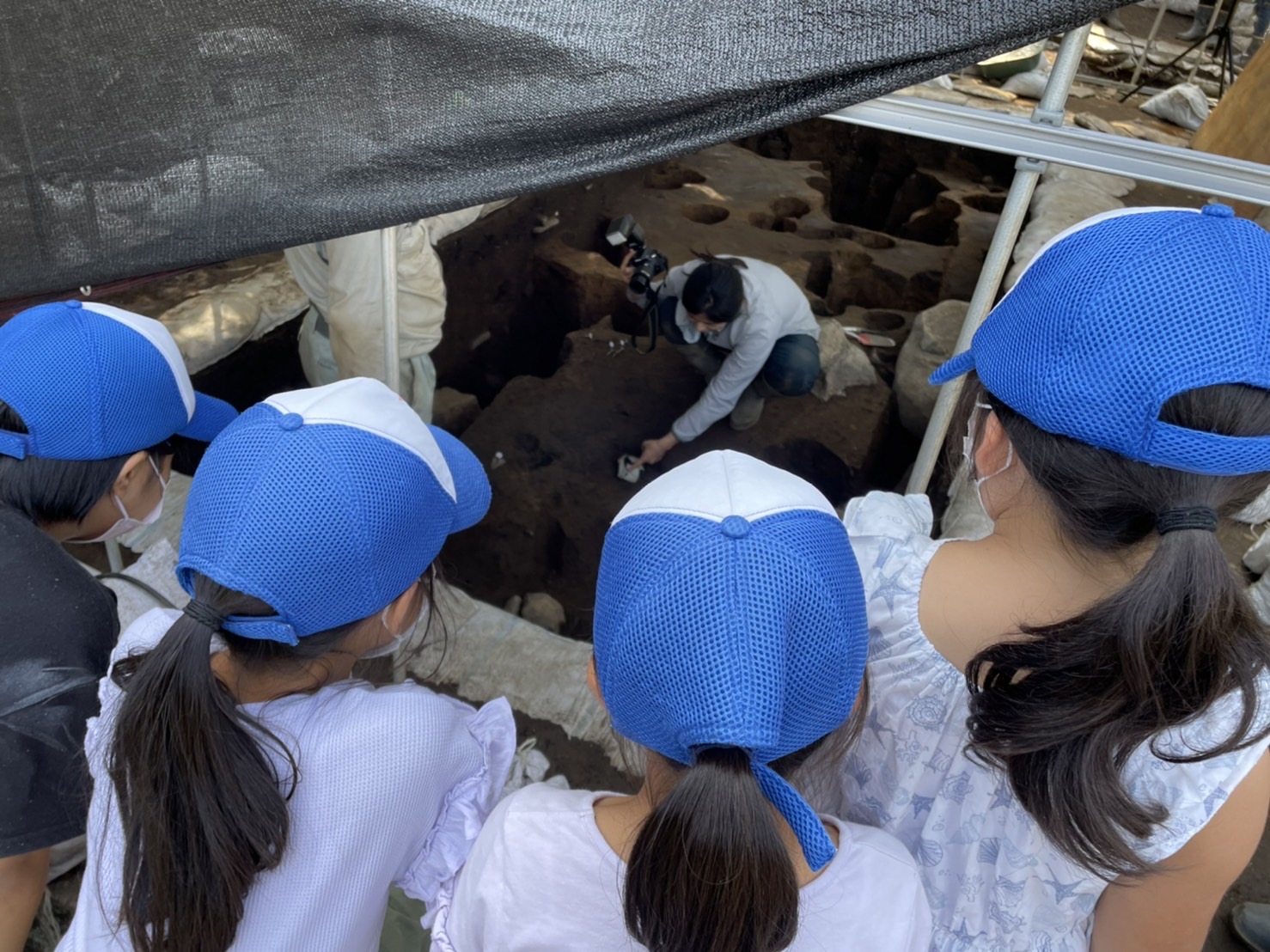 今、鹿児島国際大学考古学研究室のみなさんが発掘に来られていて見学に・・・!
