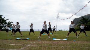 エール交換では、各団が力強く入場し、大里にエールをおくりました!