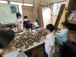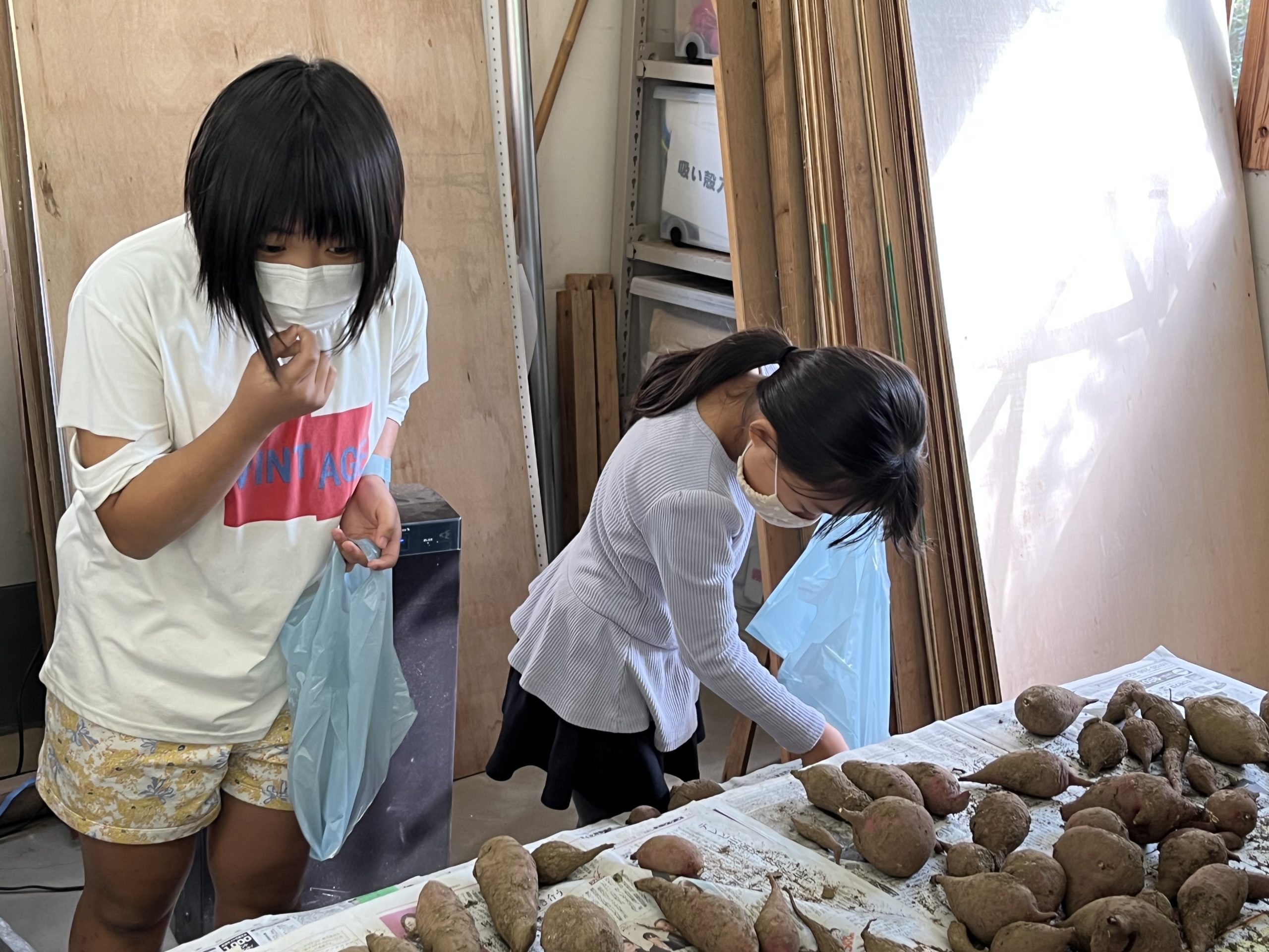 技術室では、先日の芋掘りで採ったおいもを、子ども達が選んでいます!
