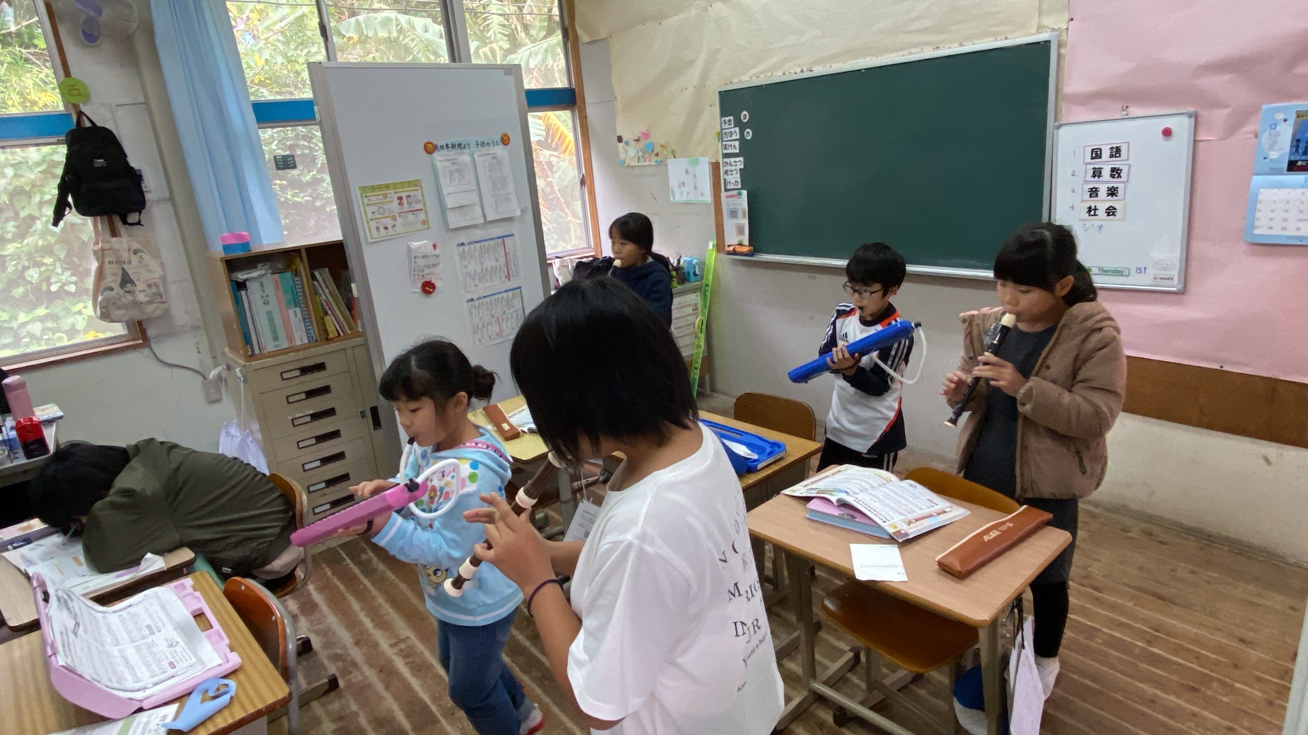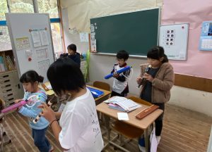 トロンボーンの音と元気な歌声に引き寄せられ教室をのぞくと