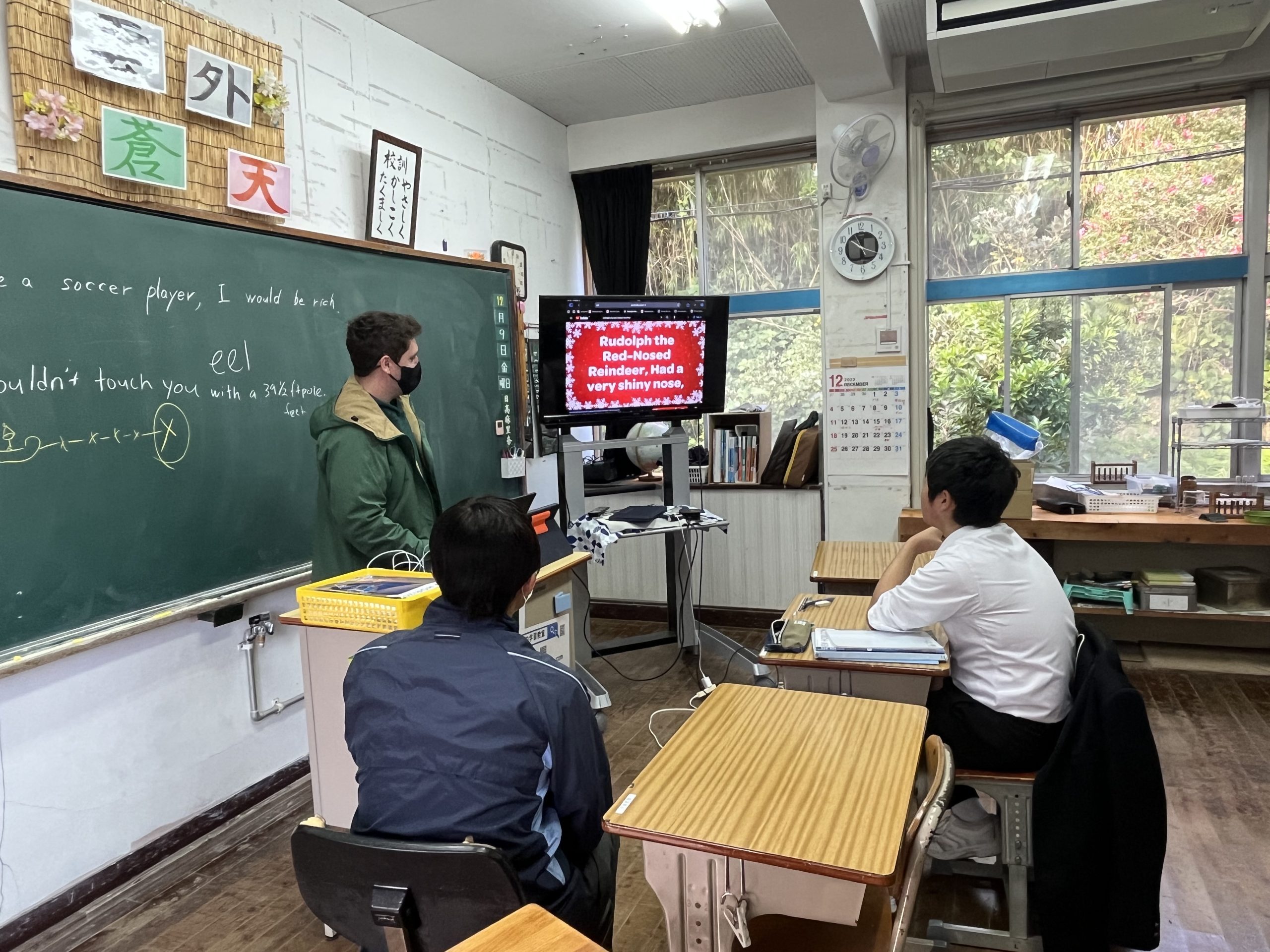 楽しそうなクリスマスソングに誘われ、9年生教室を覗いてみると・・・🔍