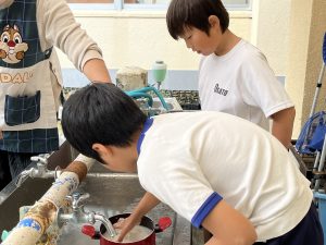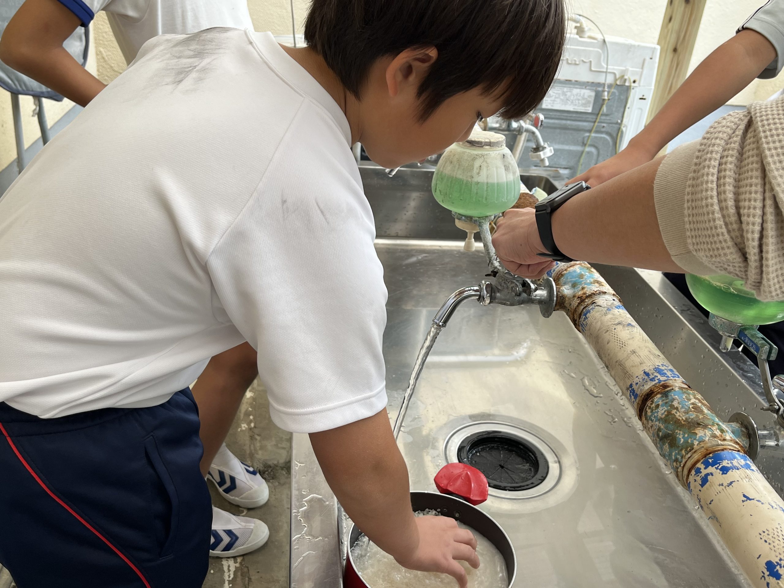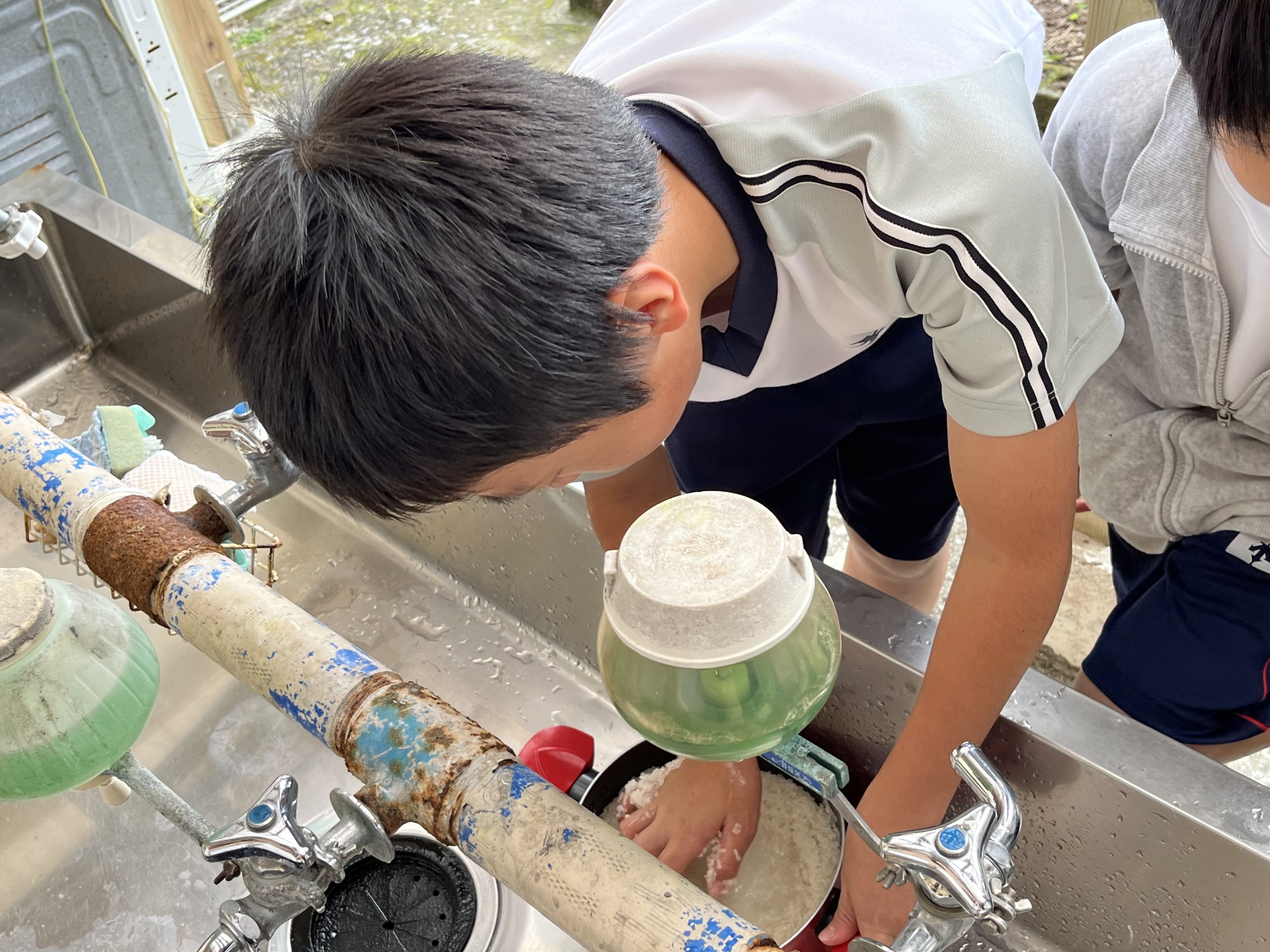 4人で協力し、丁寧にお米を洗っていました!