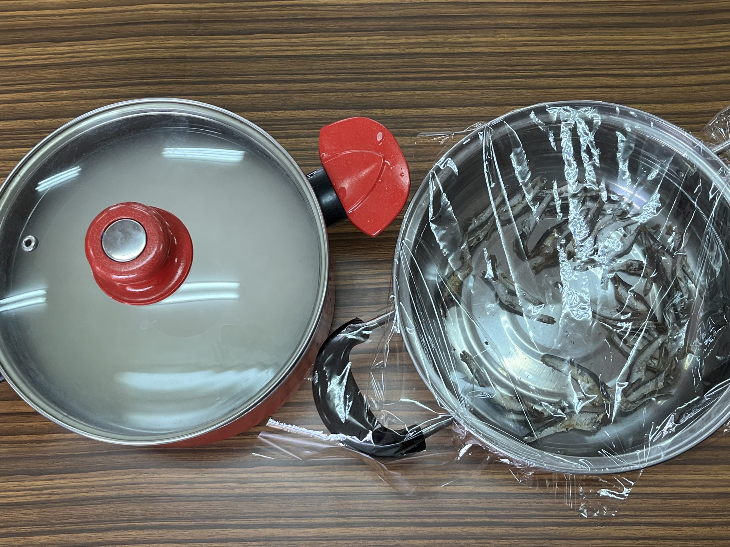 「内臓がないぞう」と冗談を言いながら、煮干しの下ごしらえをしていました!