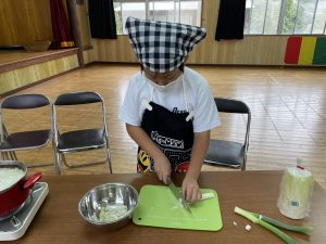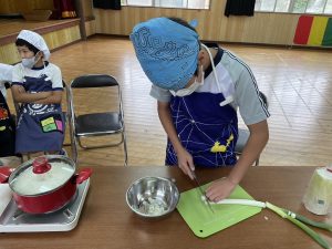 5年生は、大根と油揚げ、ネギの味噌汁とご飯を作ります!