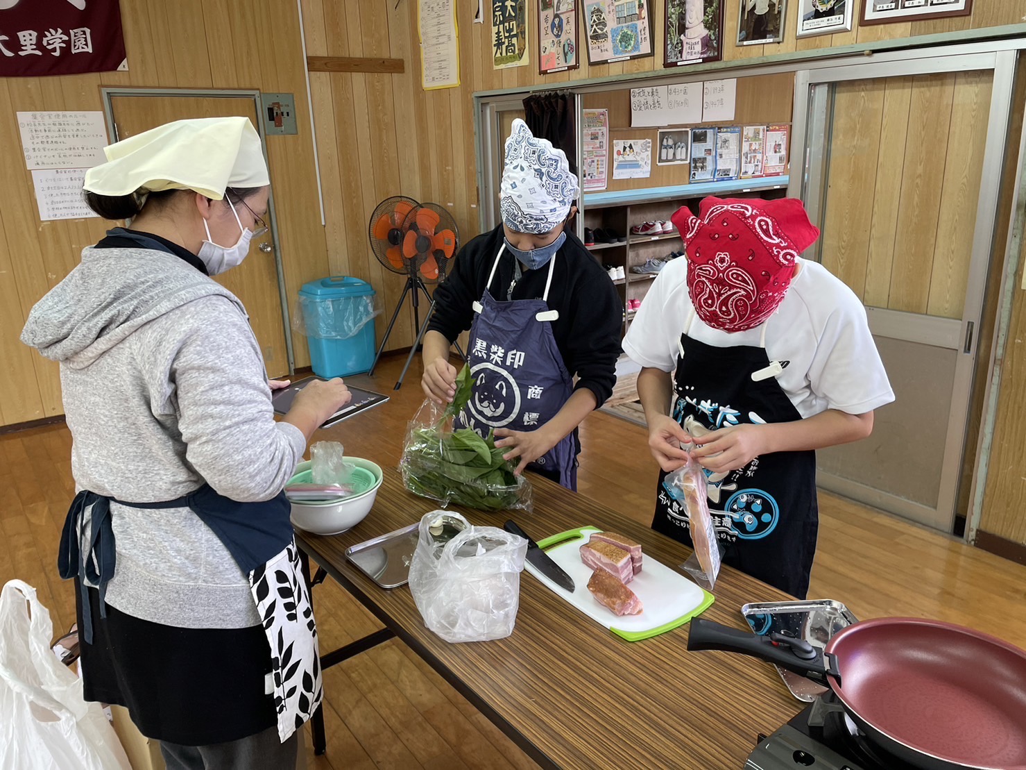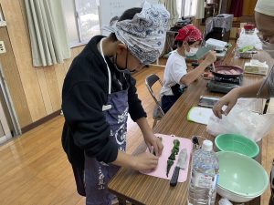 いよいよ、手作りのエプロンに身を包み、調理実習スタート!
