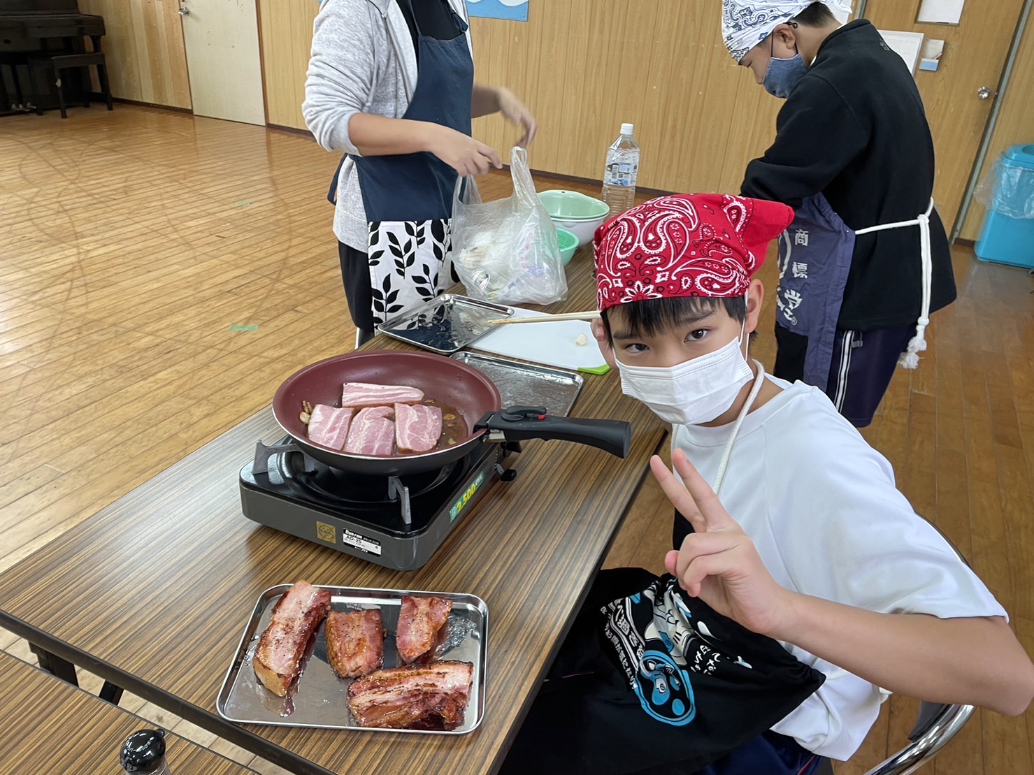 大きなベーコンに、大興奮の6年生!