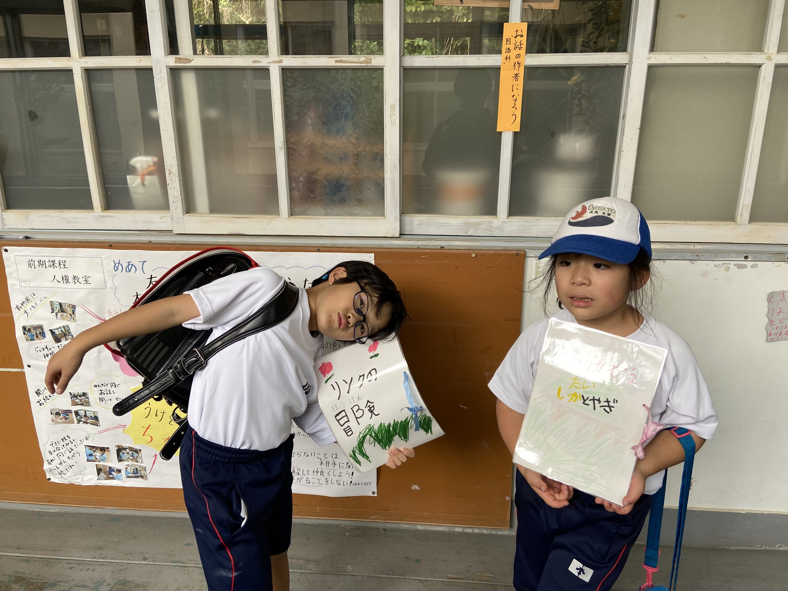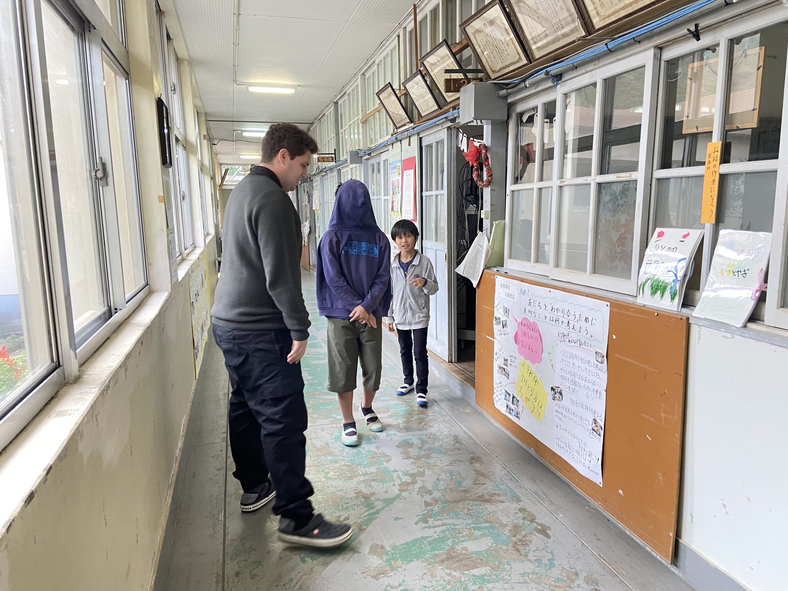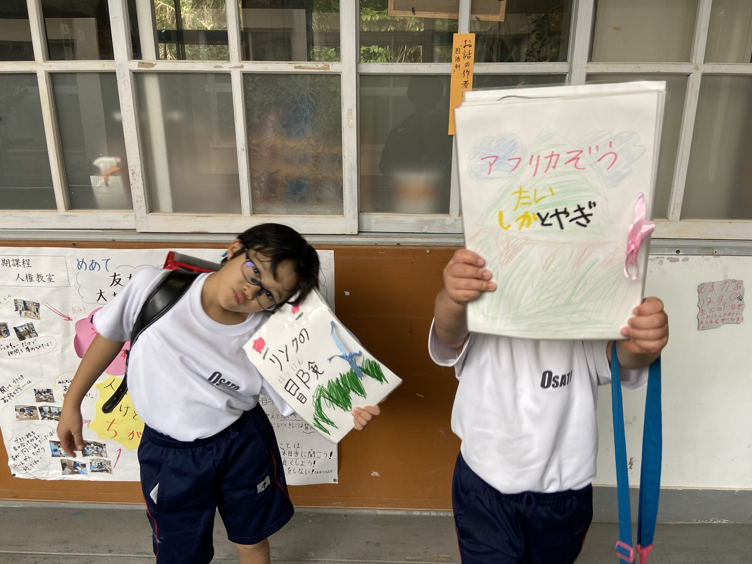 途中でたどり着いた7,8年教室で美術の授業を参観してまた