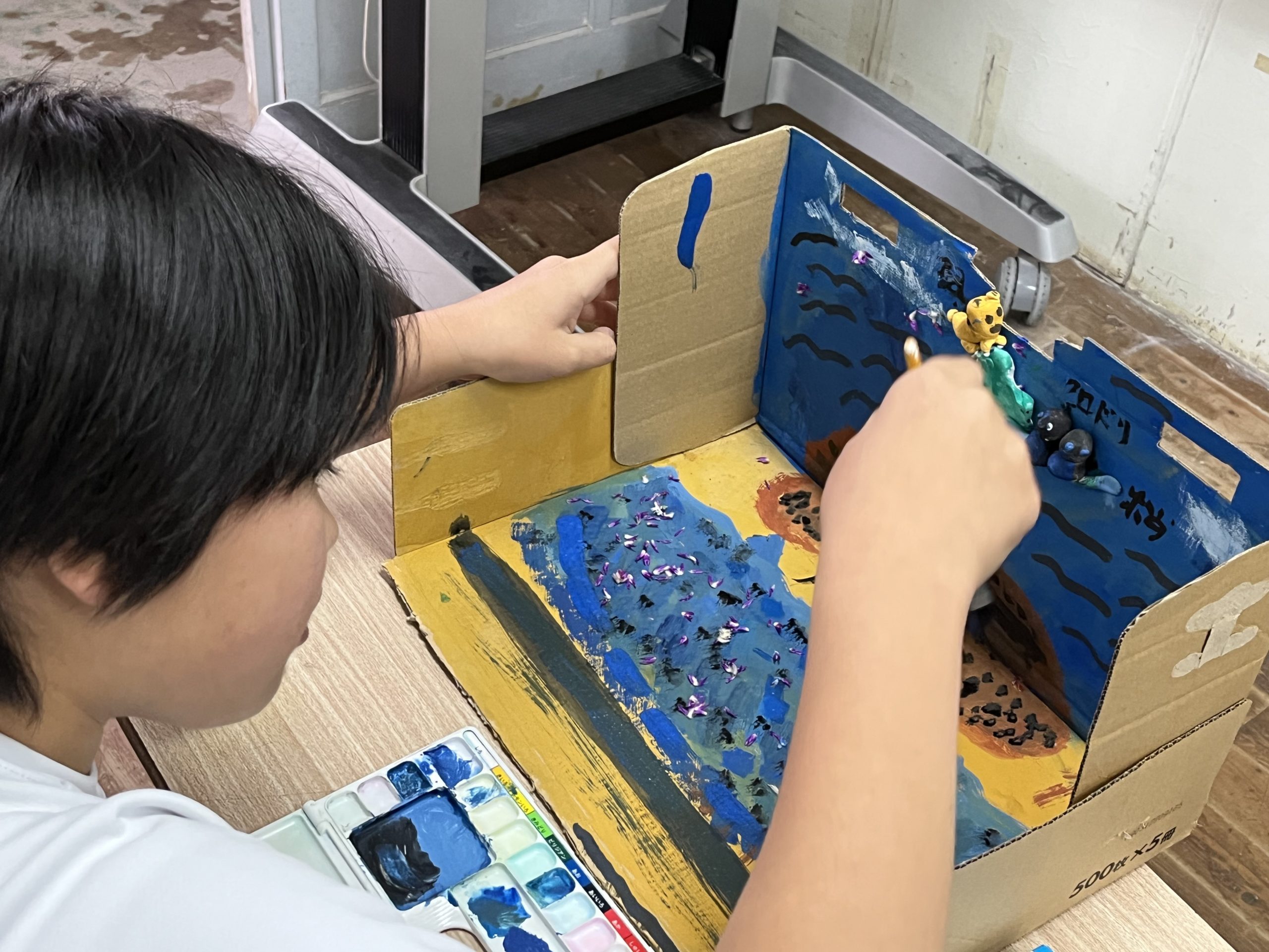 4年生は、自分で選んだ絵本の世界を、粘土や絵の具で表現しています!