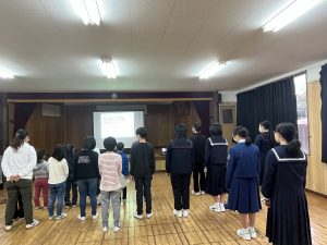 今日の児童生徒集会では、高校入試が目前に迫った9年生の激励式を行いました!