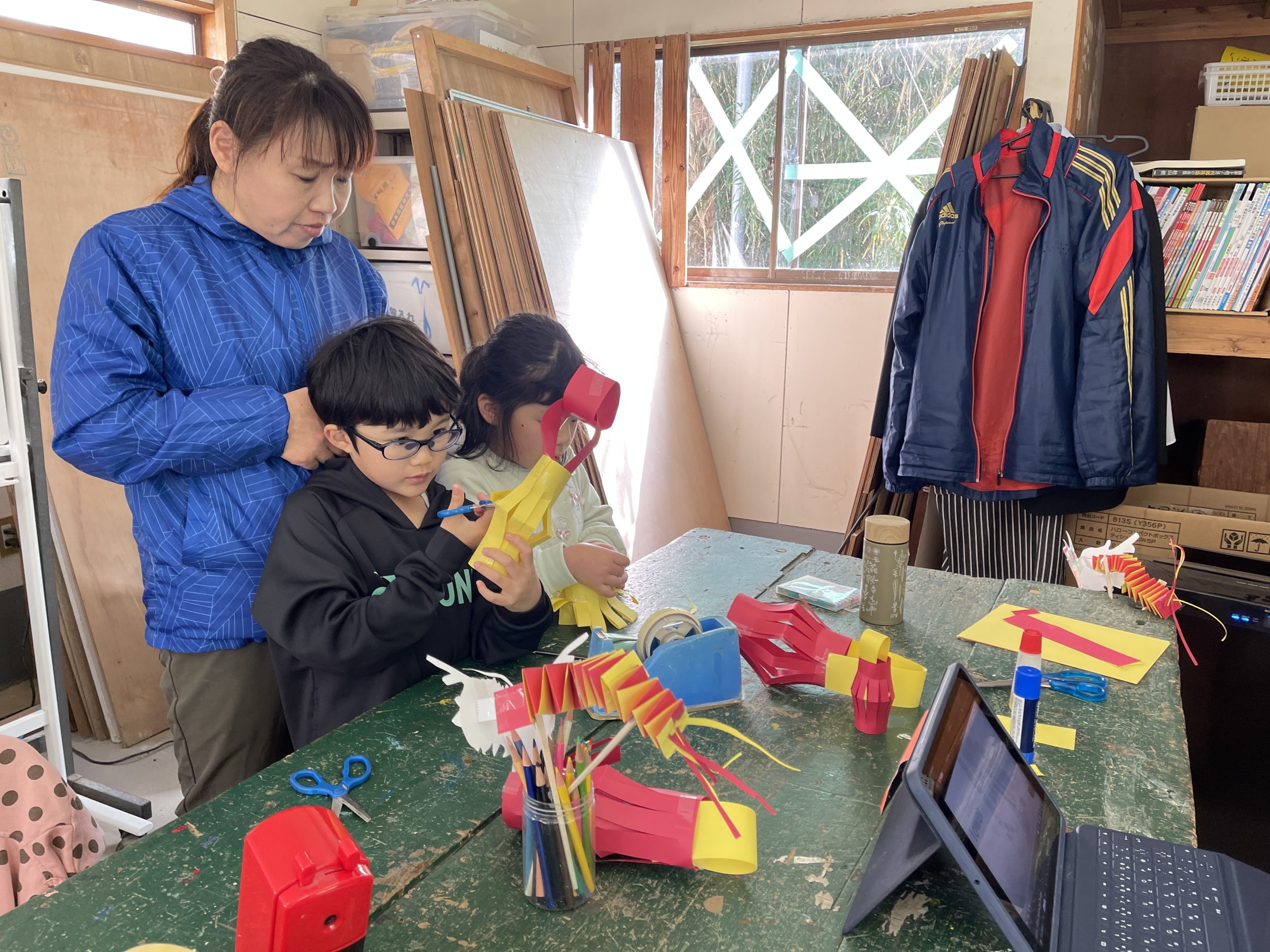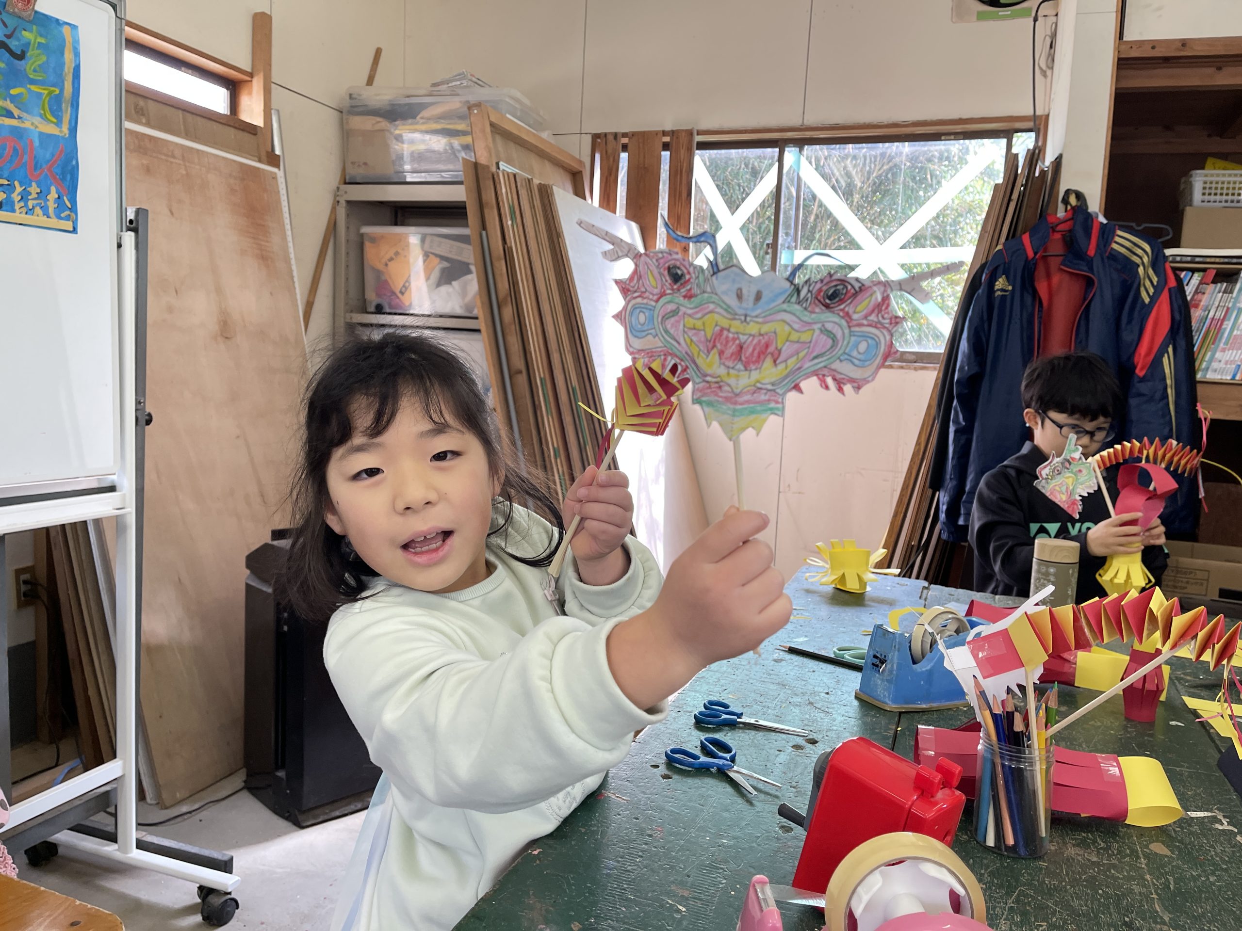 2・3・4年生は、龍舞の龍作りに挑戦🐲