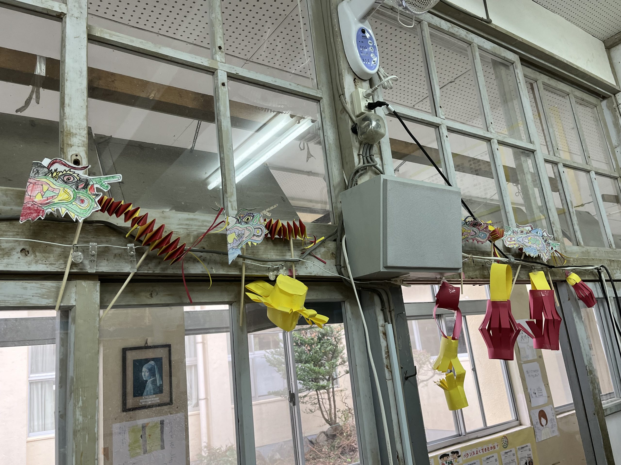 完成した龍はランタンと一緒に飾り、国際文化に親しんでいました🍀