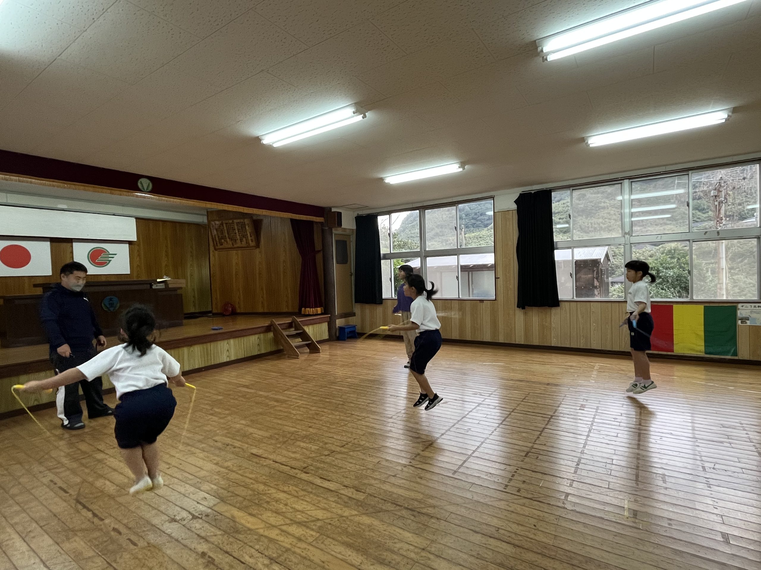 2月1日に行われる、片泊学園との交流学習に向けて、なわとびの練習をしていました!