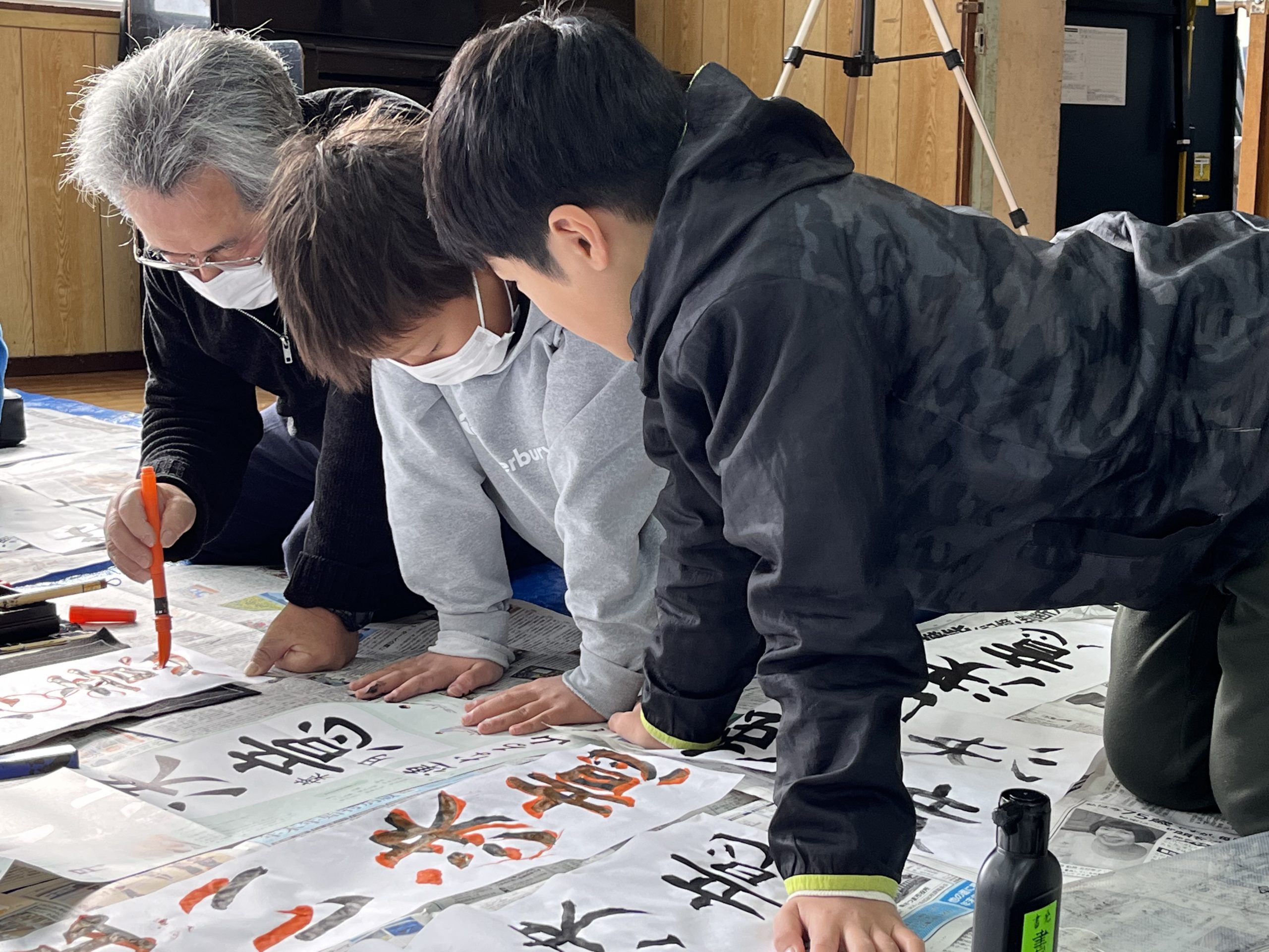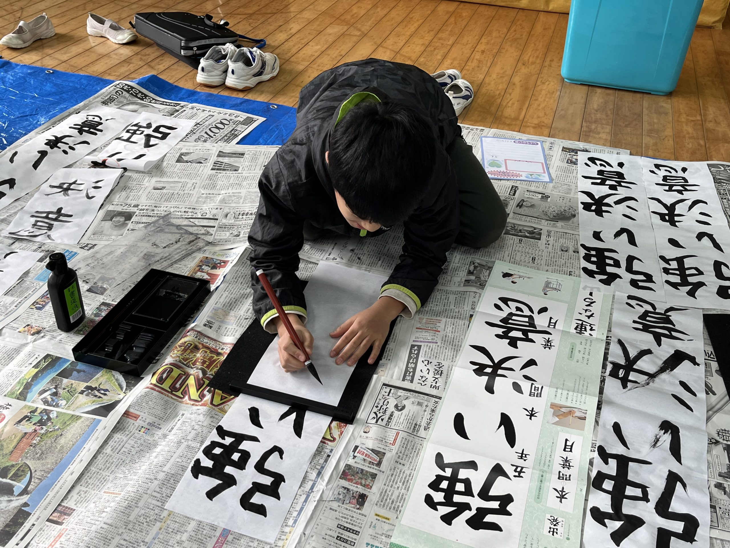 今日は、ふるさと先生として、師範の日髙学さんにお越しいただき、書き初めを行いました!