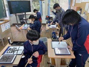 はやくもどんな1年にしたいか、今年の1文字を書きました。