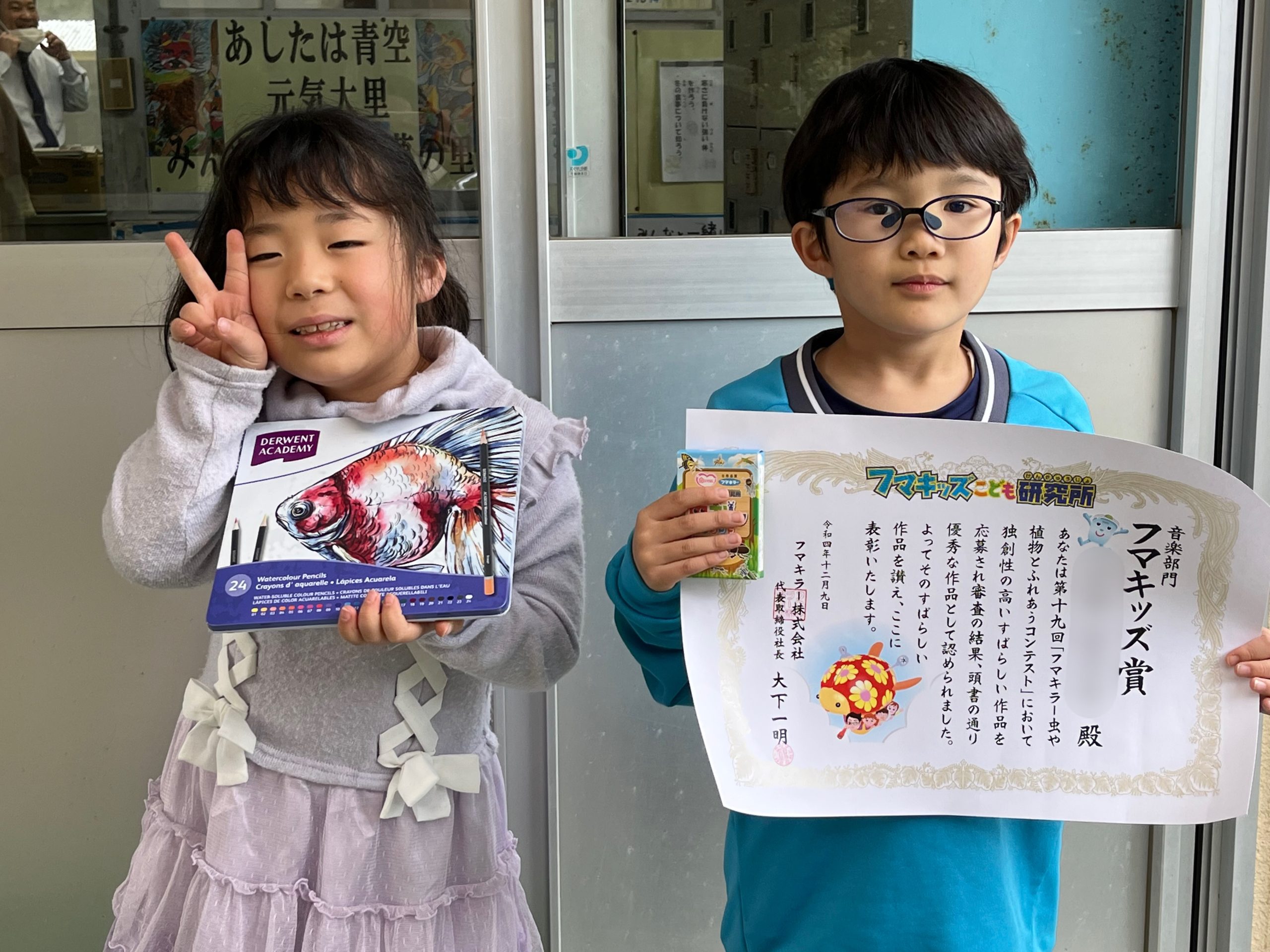 以前応募していた、フマキラー「虫や植物とふれあうコンテスト」音楽部門で、2年生の児童がフマキッズ賞を受賞しました!