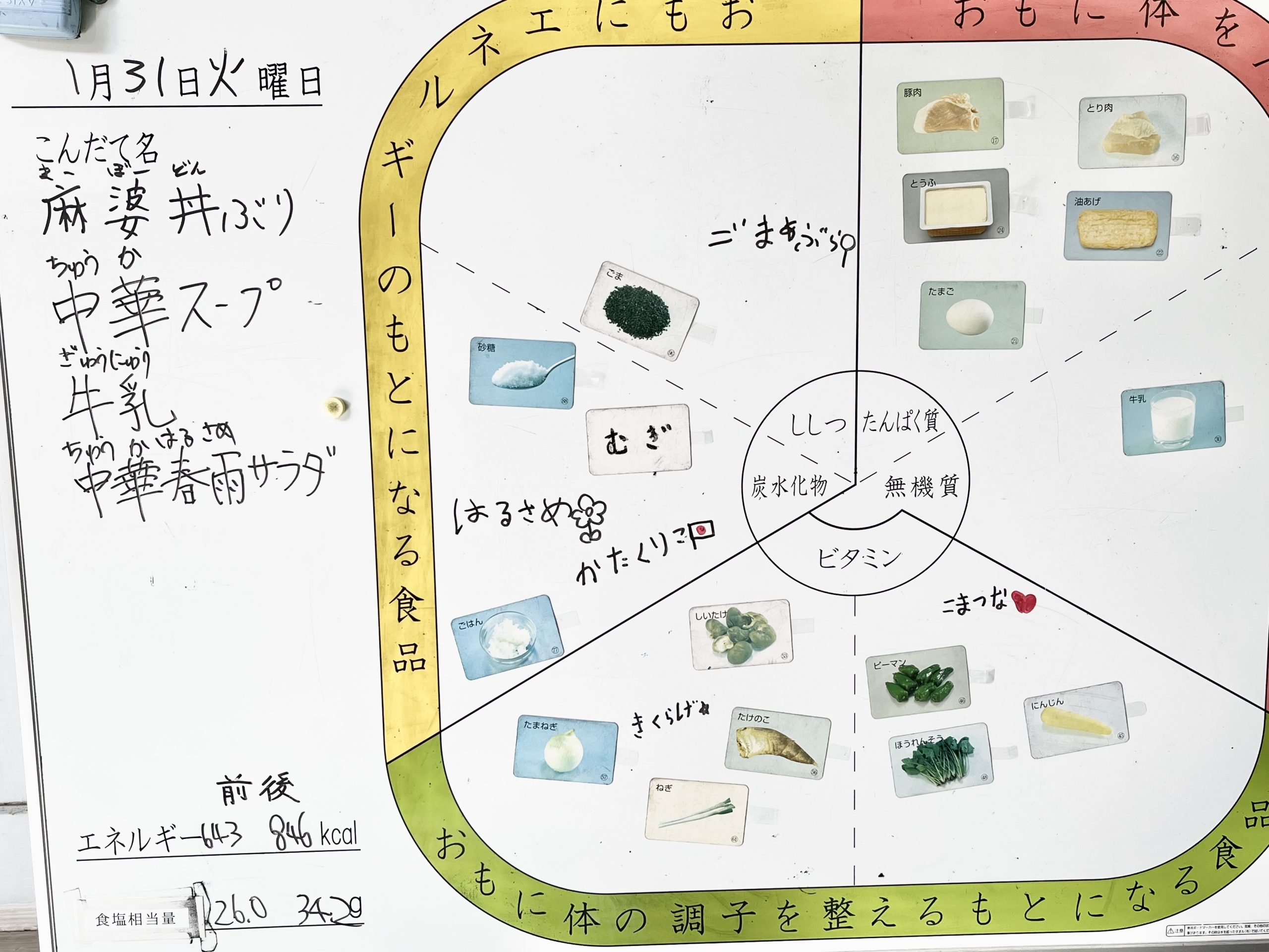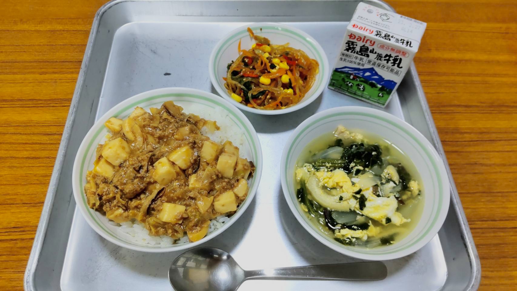 「麻婆丼ぶり/中華春雨サラダ/中華スープ/牛乳」です!