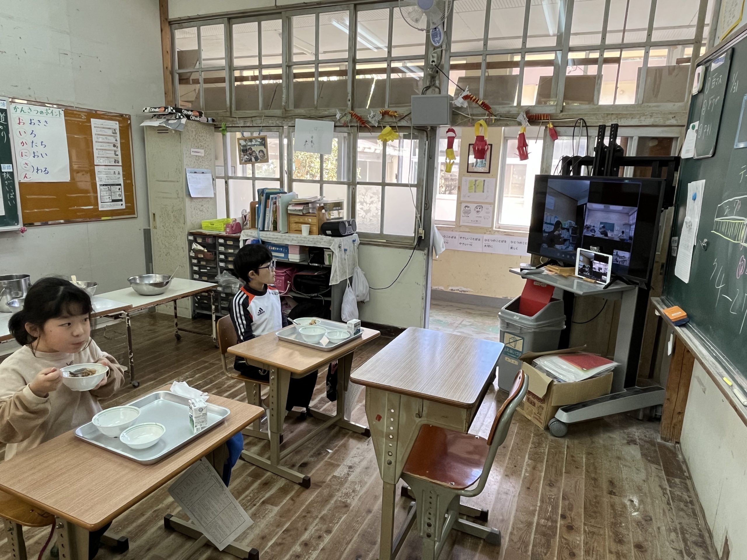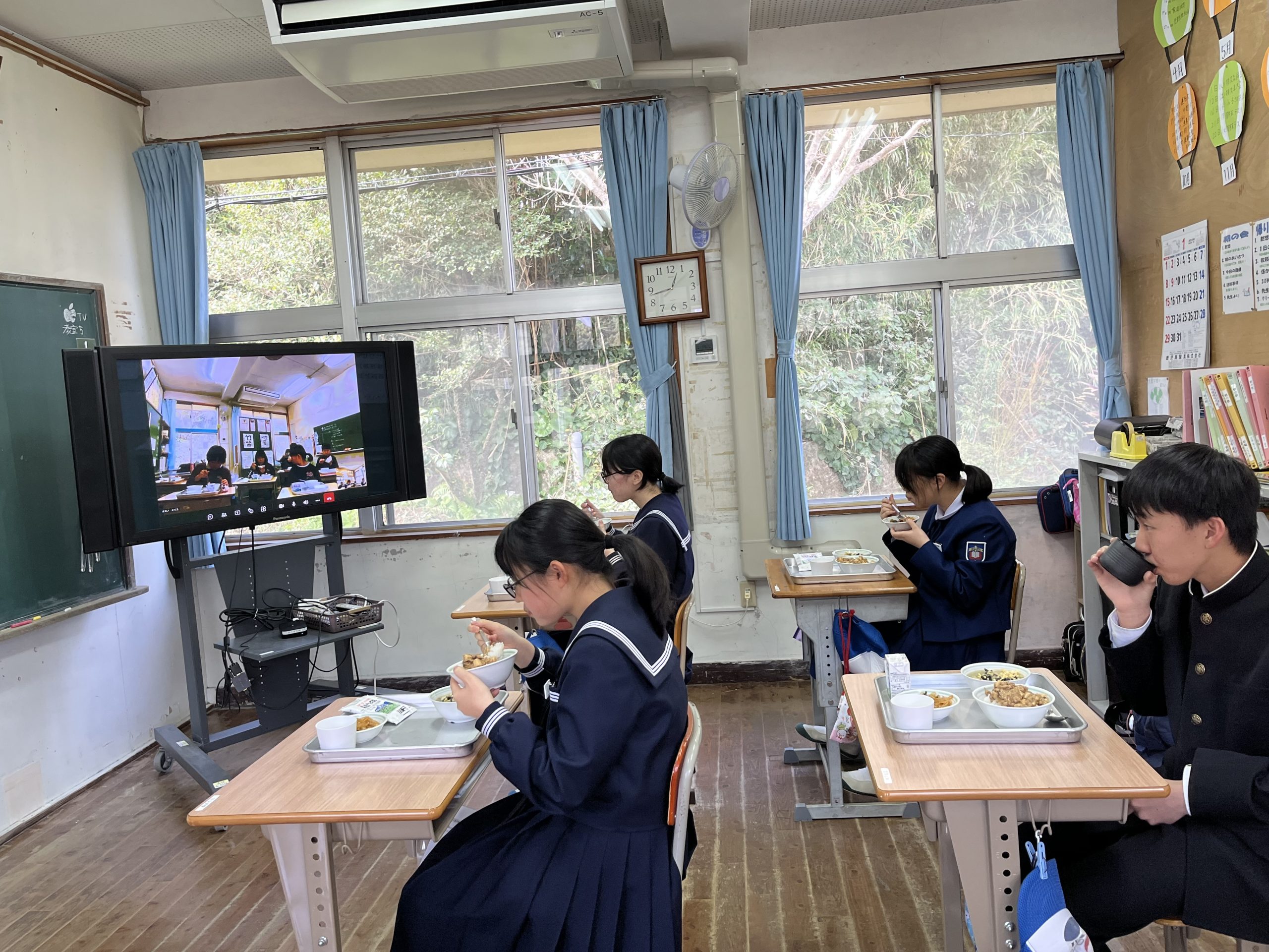 オンライン合同給食を通して他学年と交流し、楽しく食べていました🎵