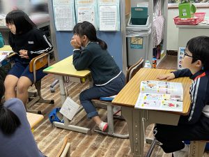 校長先生の話を受け、1枚1枚の点数は少ないけれど、みんなで集めると多く点数を集めることができると、気付いた子ども達!