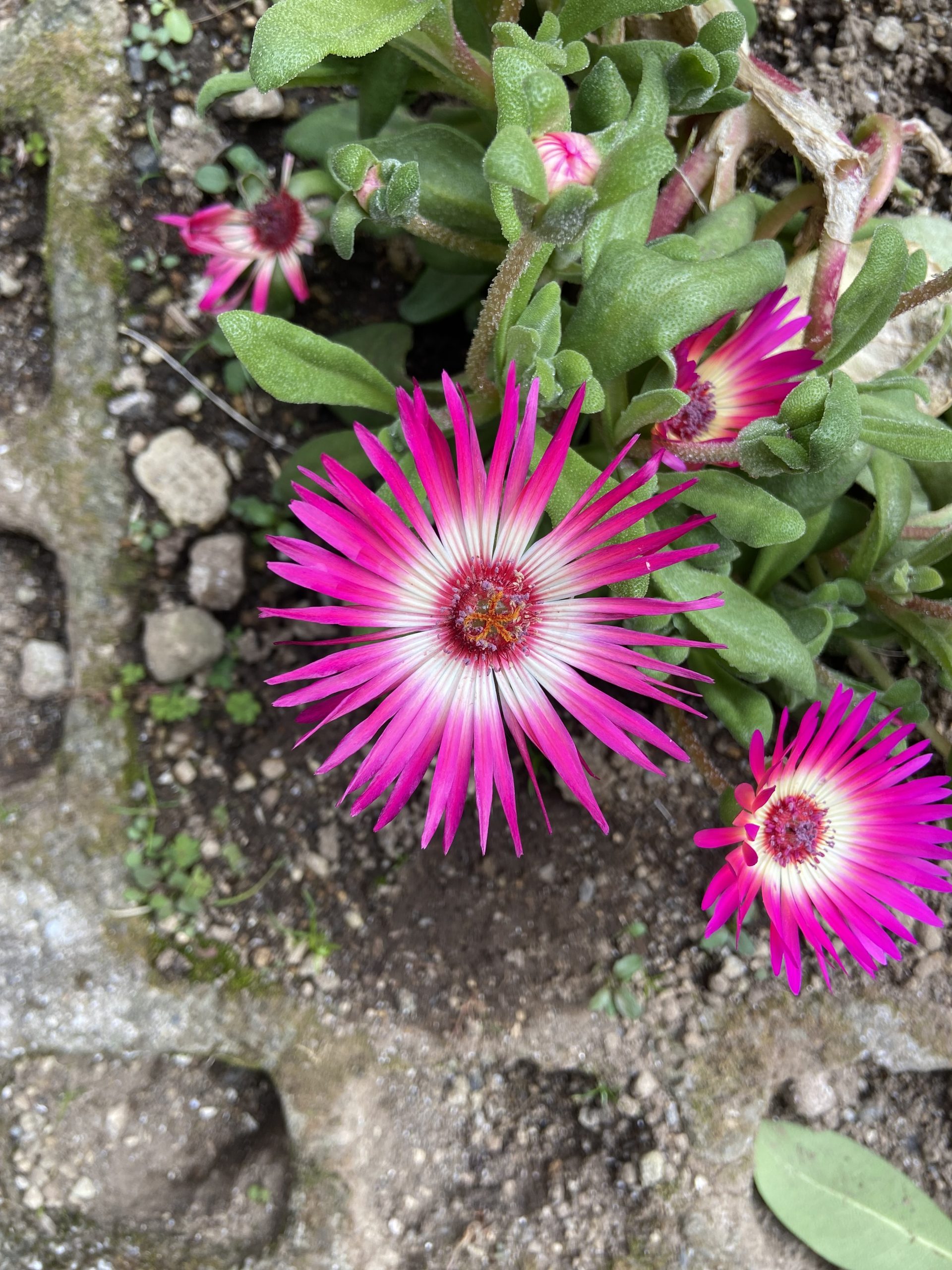 リビングストーンデイジーがぽつりぽつりと花を咲かせ始めました。