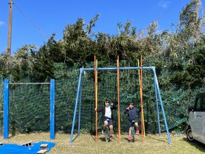 風に負けず、3人で声を掛け合いながら、ラリー続けています!