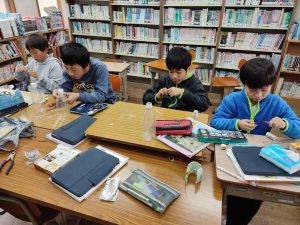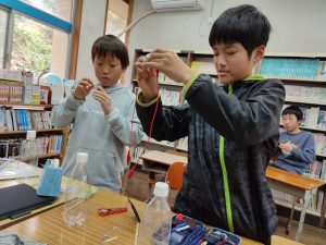 何を作っているのかな?? 銅線を巻くのに夢中な姿。