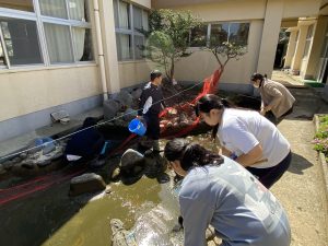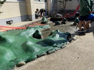 某テレビ番組のように学校の池の水を全部抜いてペンキ塗りをしました!