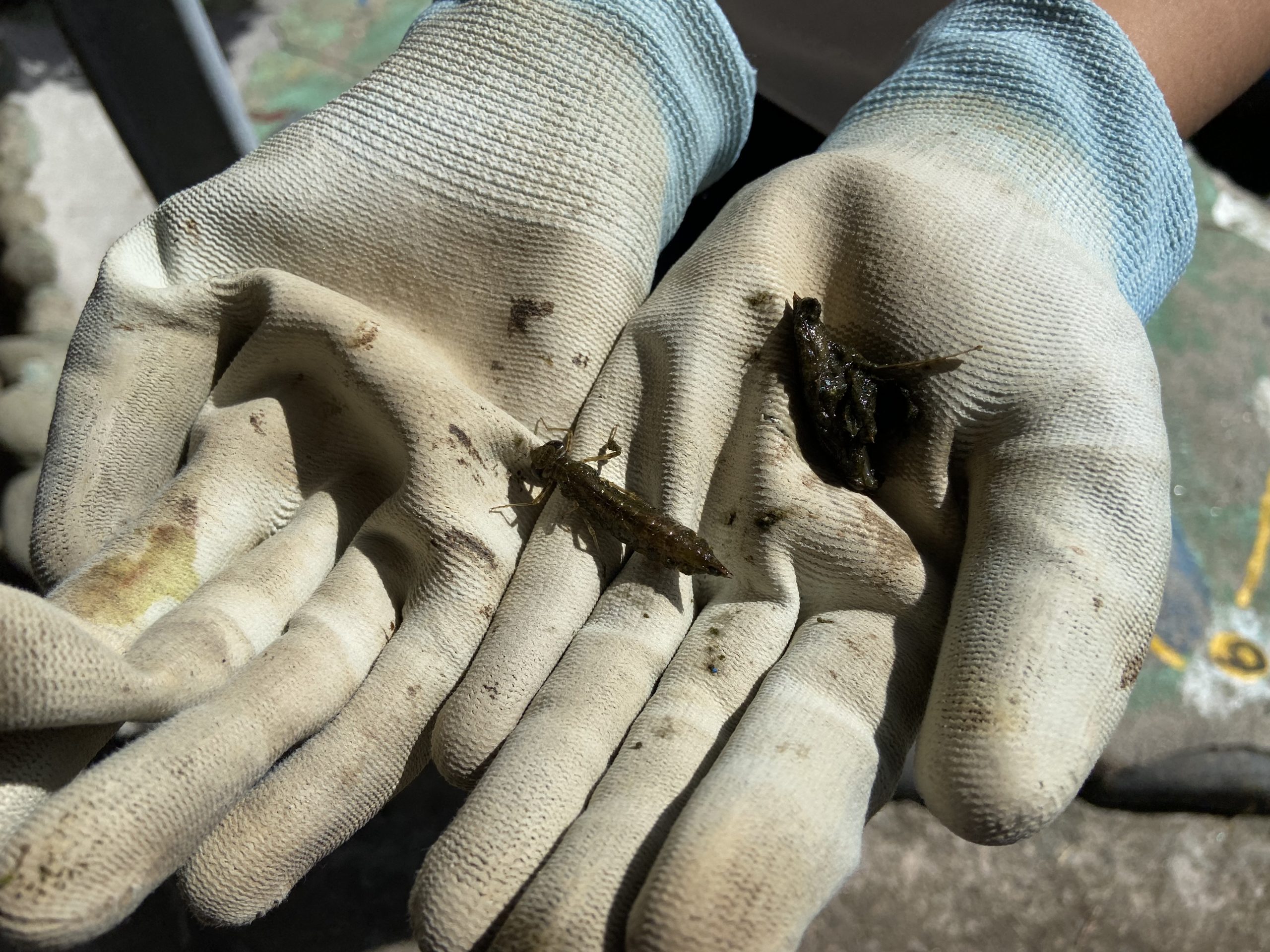 メダカと金魚をみんな救出していたら、ヤゴが!!