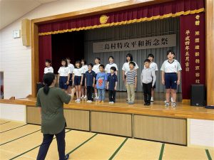 6時間目に、「特攻平和祈念祭」の式典の明日のリハーサルを行いました。