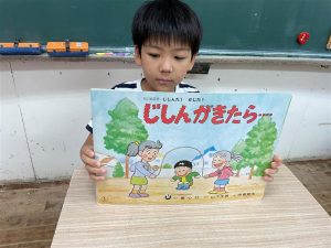 紙芝居の絵をめくるのが難しかったみたいです。勉強しています。えらい!!(*^。^*)