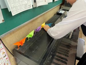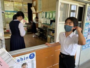 昼休み中 後期の生徒もカリンバを弾いたり,折り紙を飾ったり,冗談を言ったり