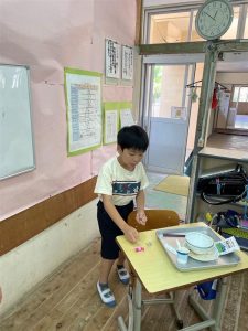 特攻平和祈念祭に参加された皆様から頂いたお菓子を給食で少しいただきました。