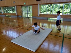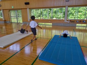 前転・後転ができるようになりたい🌼🌷🌹 投稿者: 三島村立 三島大里学園 2023年5月24日 青空の天気,少し離れた所にある体育館 1・2・3年生のみんなでマット運動の練習をしました。゚🌞 前転と後転の練習を頑張っています。💕 ギリギリです。😅 上手くいきました。パチ パチ😄何回も何回もがんばっています。 上手くなっているようです。🤗 この調子で頑張りましょう!