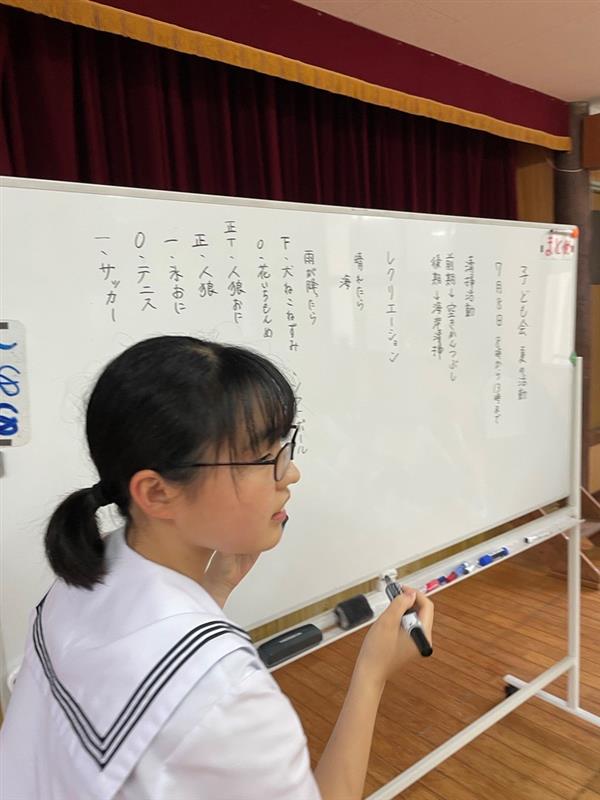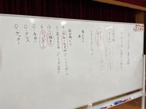 子ども会 開催🤗💕 投稿者: 三島村立 三島大里学園 2023年6月10日 今日は土曜授業の後、子ども会の話合い活動がありました。 清掃活動の後のお楽しみ会の内容を決めています。 みんな積極的に発言しています。 書記もがんばっています。 司会の人はみんなをまとめるのに、一生懸命です。 食事会のメニューとレクリエーションが決まりました。 レクリエーション「人狼鬼ごっこ」「犬ねこねずみ」「ドッジボール」 食事会のメニュー「そうめん」「おにぎり」に決まりそうです。 頑張って司会してくれました。お疲れ様でした。🤗💕
