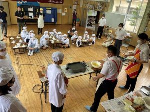 毎年給食に使う油を本校に寄付してくださっています。今年は来校してくださり直接手渡ししていただきました。